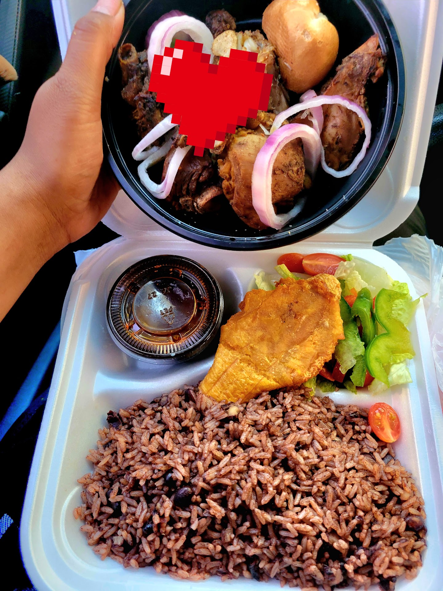 I order the oxtail plate on ubereats, it was okay! The meat itself was pretty bland and flavorless, I was sad there wasn’t a nice gravy on it, it seemed to look boiled and thrown in oil. The presentation was lovely, an insane amount of rice, a little salad, and plaintains. Unfortunately, the plaintains were over fried and tasted like chalk. If they could elevate their oxtail and especially portions of HOW much oxtail you get for your order, I would most definitely return. I had 3 small oxtail bones for my order… Until then, this establishment was unfortunately a one and done for me. Do better, just because we order take out doesn’t mean we can...