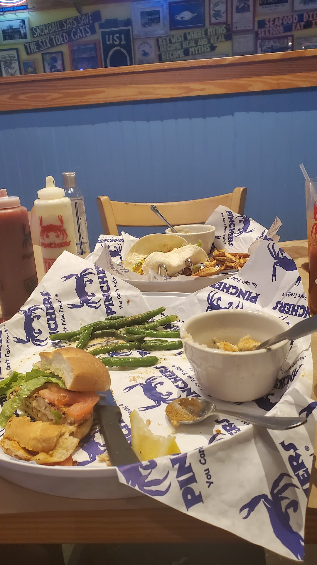 Read moreWe usually love going to pinchers this is why we brought family in there that was in town for her birthday. Prior to getting there we added that we have a birthday in our party. No happy birthday nothing. We got seated at a table that had a broom leaning on it, my husband had to move it so he could sit, the lady that walked us to the table looked at it and decided to just ignore it. The table was still wet she forgot the paper for the table so she laid the menus on the wet spots. Well. Ordering went well. Our waiter forgot the waters we ordered. Then our calamaris came but it looked like only half a portion and the seasoning was around on the plate but not the calamari. After we received our entrees the waiter brought another calamaris and told us the kitchen made too many and he told them to bring it to the table.after we finished we had to wait for over 30 minutes for our check and Well guess what he tried to charge us for the calamari and also tried to charge us for large portion when the birthday lady only ordered the little portion and also the kids meal. He had to go fix the bill we waited another 20 minutes. Total time of waiting for our check and him taking it almost an hour. Food was okay not special or anything. Our son had the popcorn shrimp and after we got home his stomach started hurting and he literally had to run to the bathroom. Like i said before we usually love going to pinchers but as of right now we are very disappointed and do not plan on returning anytime soon or bringing...