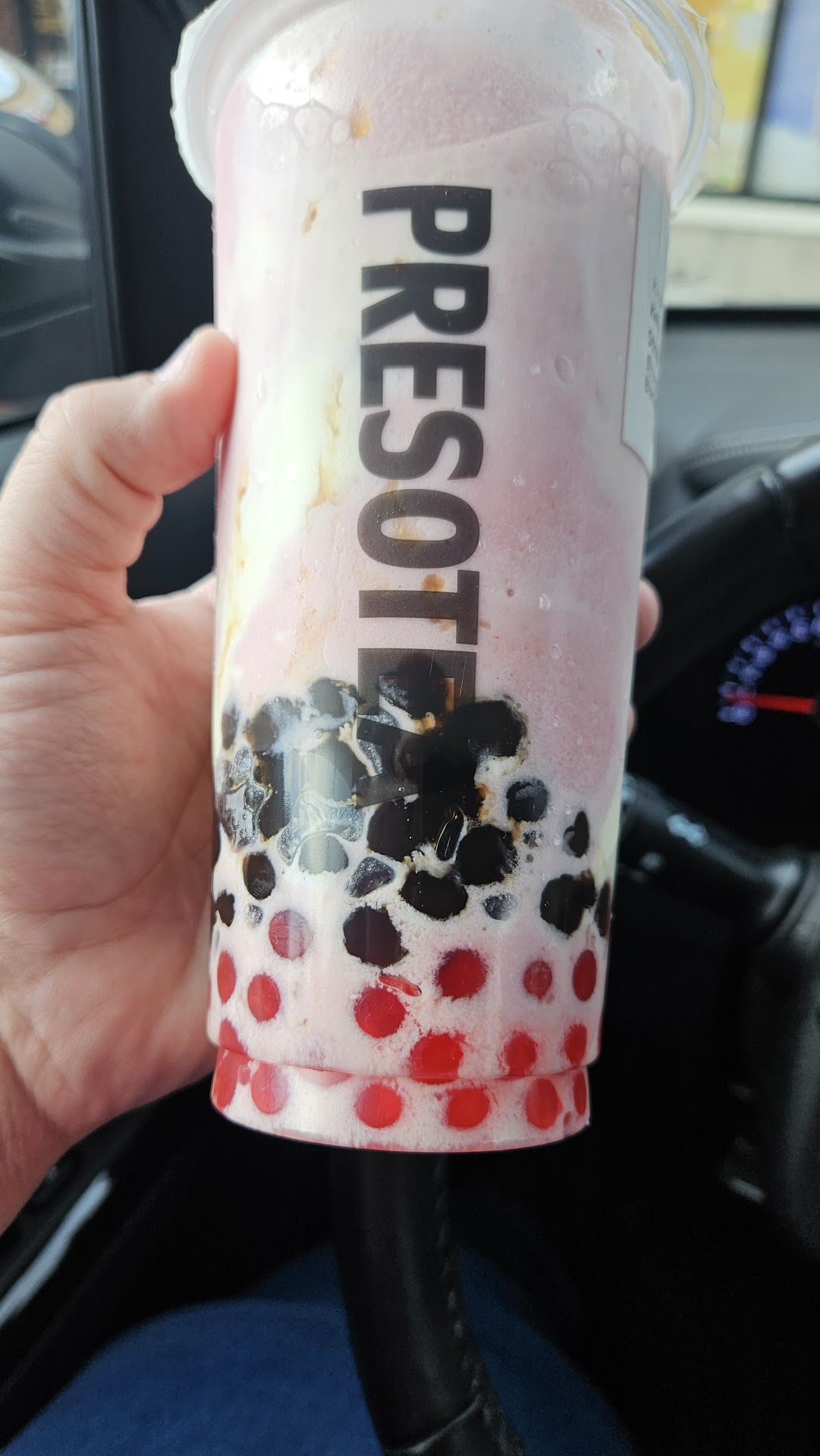 Ā Ā Ā Read moreMy daughter and I love trying different shops in the area that serve drinks with Boba in them. Each shop seems to have specialties that others don't. PresoTea offers "cloud" drinks. I normally get their brown sugar milk tea with coffee jelly and traditional tapioca boba pearls. This last trip there, I got the strawberry cloud which is a blended drink. I added strawberry popping bubbles, traditional tapioca boba pearls, pudding with 50% sweetness and whole milk. It was a nice change. Not too sweet. A perfect combination of the strawberry and milk. Definitely recommended. Great shop for those who are wanting to try...