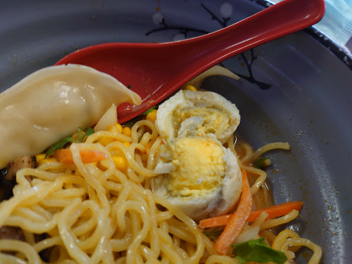 The things that threw me off were the egg, veggies, and broth. The egg is hardboiled, a little over cooked even. This was a bit disappointing. Usually ramen eggs are soft boiled at least. I'm not sure if this is caution on the part of the owner with food safety, regular customers not liking soft boiled eggs, or something else. Hopefully the owner will consider adding the option of a soft boiled ramen egg especially since the menu already strangely has options for noodles that isn't used in ramen.