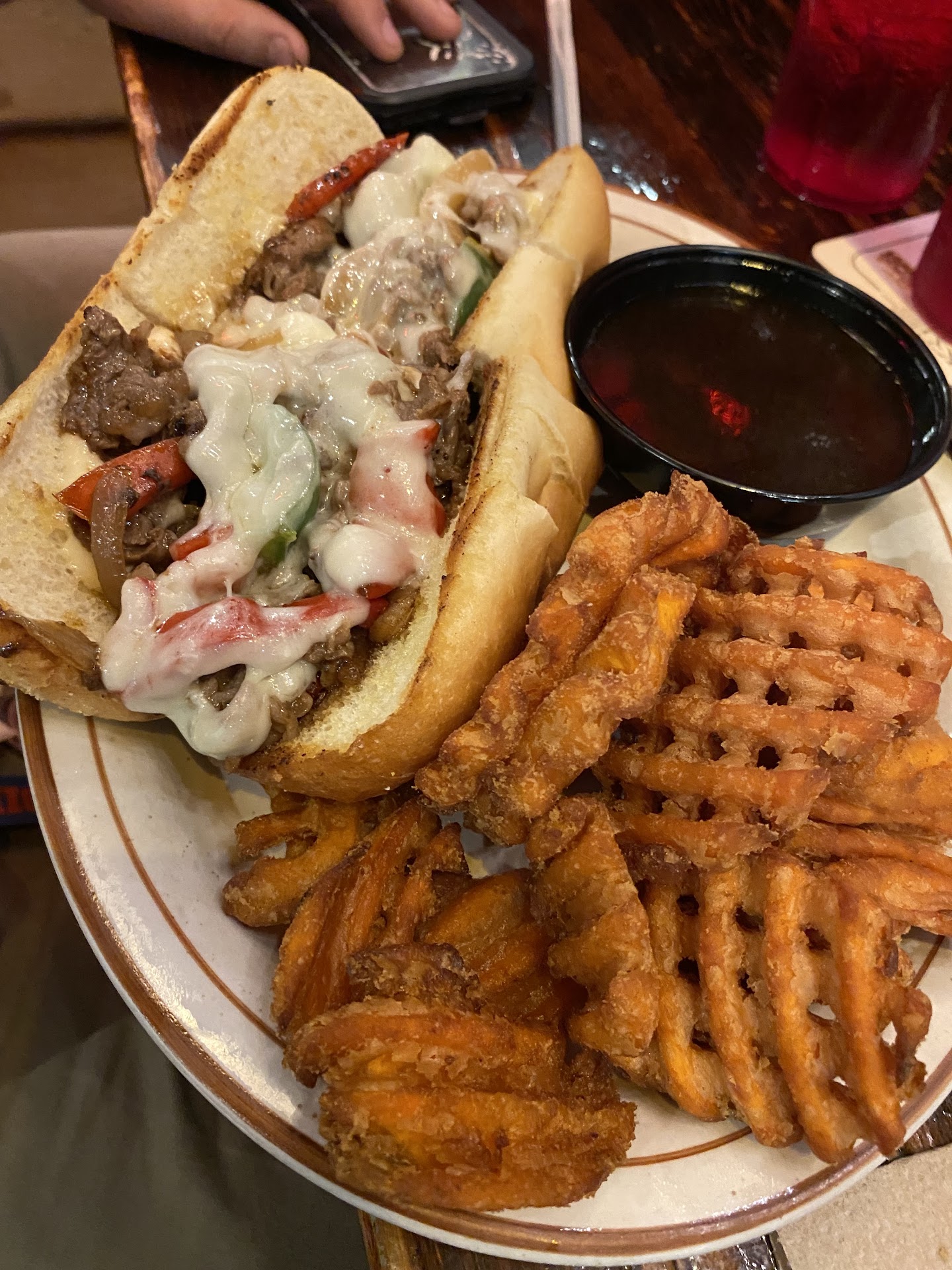 Brielle brought my food and quickly went over everything. I was hungry, tired and wanting to get to the hotel. Now, this is where it goes a little South. First off, the ribs were not the "fall off the bone" type ribs which is ok for me, I don't mind a little tug but these I actually had to use a knife to cut them. Very tough. The baked beans had green peppers in them which I am not a fan of. They would have been perfect without the peppers, but the worst part of the meal was they FORGOT MY WIFE'S OKRA!!! She was so disappointed :(