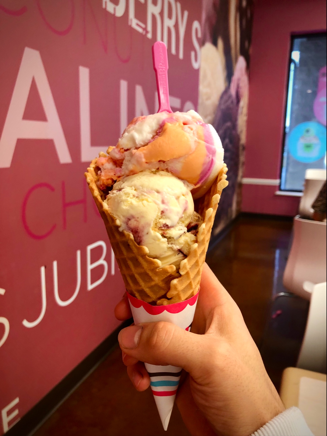 Will never go here again, we got our ice cream and immediately noticed that nobody was wearing gloves and touching everything without washing hands or even hand sanitizer. By everything I mean trash bags, dropping rags on the dirty floor and using said rag to “clean utensils” and by cleaning the would simply wipe it down with dirty water that they put there dirty hands in. Not to mention they would come in contact with the ice cream like it’s on their hands, we sat and observed and they would touch all over there selves and still not washing hands. I couldn’t finish my ice cream after seeing everything. Very unhygienic and will 100% not...