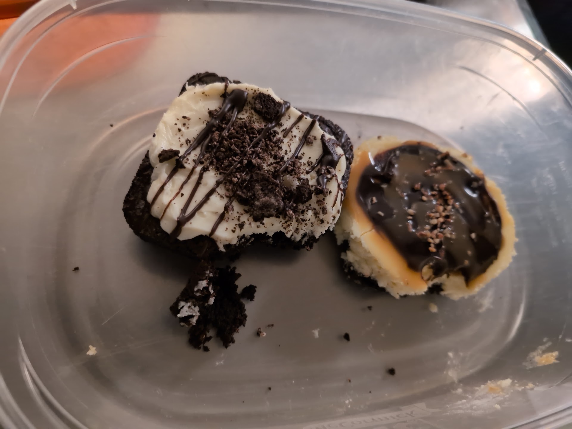 Went into the store today for the first time. It's very nice. You watch as they actually make the cookie dough in front of you. It smells so good!!! The staff was so polite and adorable and of course helpful. They had a sample on the counter of today's offerings, and the brownie was a different shape. So we ordered one brownie and one turtle cheesecake. When the brownie came it was a different shape and being a smartass as I am. I made the comment ... Oh it's different than that one! The adorable girl said ... That one was baked in a different shape of pan, it's still the same amount it's just instead of long and thin it's short and thick. So of course I had to say..... Oh just like me ... I am Short and Thick!!!!! The moral of my story today is ..... OMG THEY ARE BOTH...