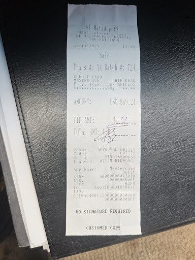 Read moreApproximately 6 months to a year ago, I wrote a review about El Matador is was quite complimentary. My family and I have been going there for many, many years and were always please. Something is changing there the last three months approximately 7 visits or more. I have noticed a difference is the quality of the food and taste. I really hate this because the restaurant is close by and has in the past been very good. I hope this find the correct person to get a hold of this situation. The quality and service is not what it use to be nor is the food. We eat there almost bi weekly. Just the other night the waitress brought out the food set it down and it wasn't what we order. Immediately after I asked the waitress what this was and she recognized that not what we order. She went back to get our order and It came out wrong again but we accepted it because it was close to what we order. Later while paying, I noticed it seem kind of higher than usually I realize prices have gone up we eat out probably four times a week. The cashier ask, if I wanted a receipt I said yes but when I got it the receipt it was not itemized. I really feel like we got charged for actually what came out first time to our table but will never know because I didn't want to wait any longer. I paid left a tip and moved on. I will say that El Matador still has the best sweat tea around but that want keep me coming back. I hope they can get a handle on this because its close to the house and once...