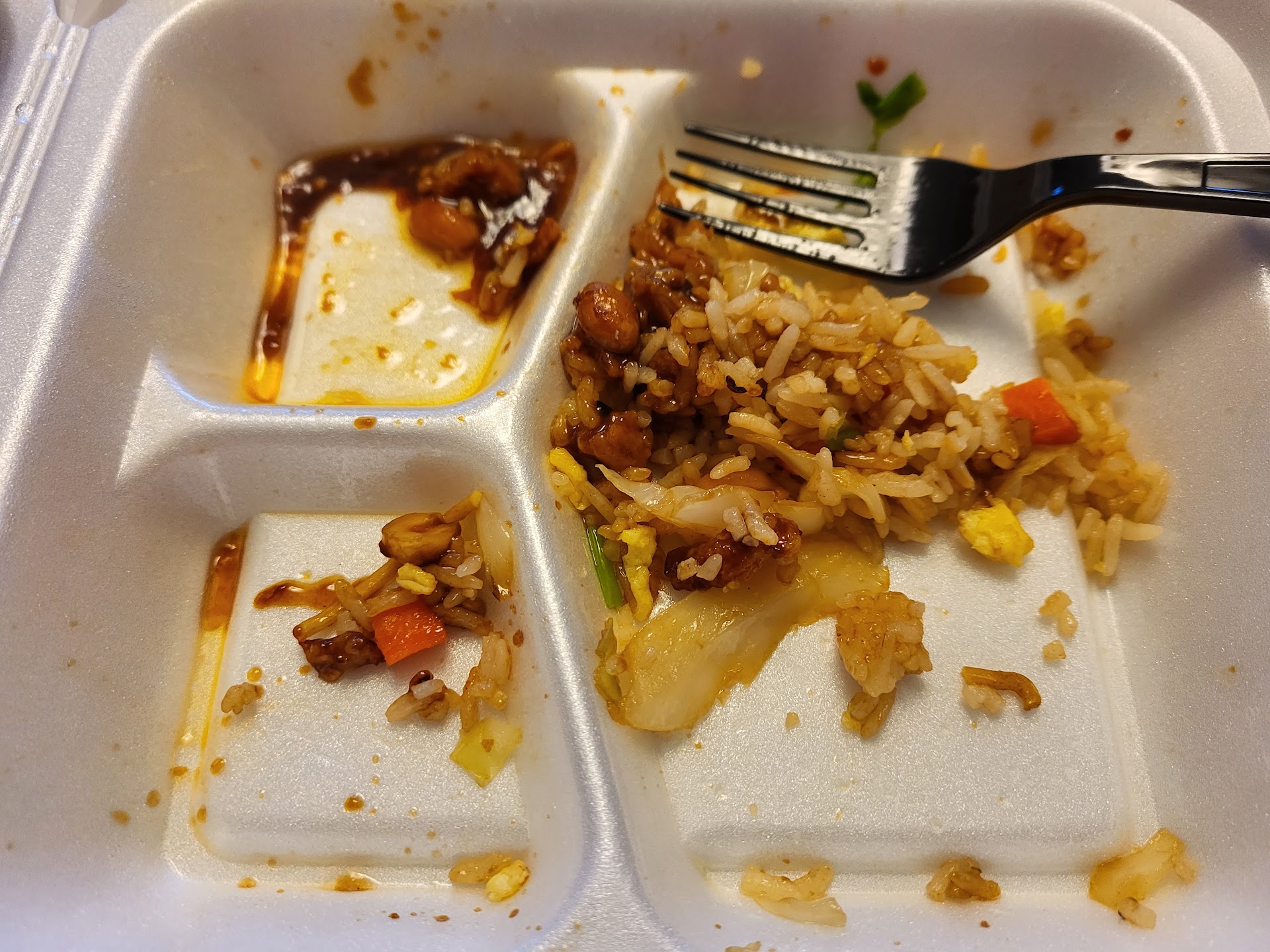 ZERO customers in the dining room while 5 online order recipients (Self included) wait over 30 minutes for our order. 1 cook in the kitchen hustling to keep steam table full, 2 servers hustling to fill orders while running out of food. 1 drive-thru employee doing very little while the young, confused and highly inexperienced manager stands watching it all doing absolutely NOTHING to 'MANAGE' or help in ANY way!