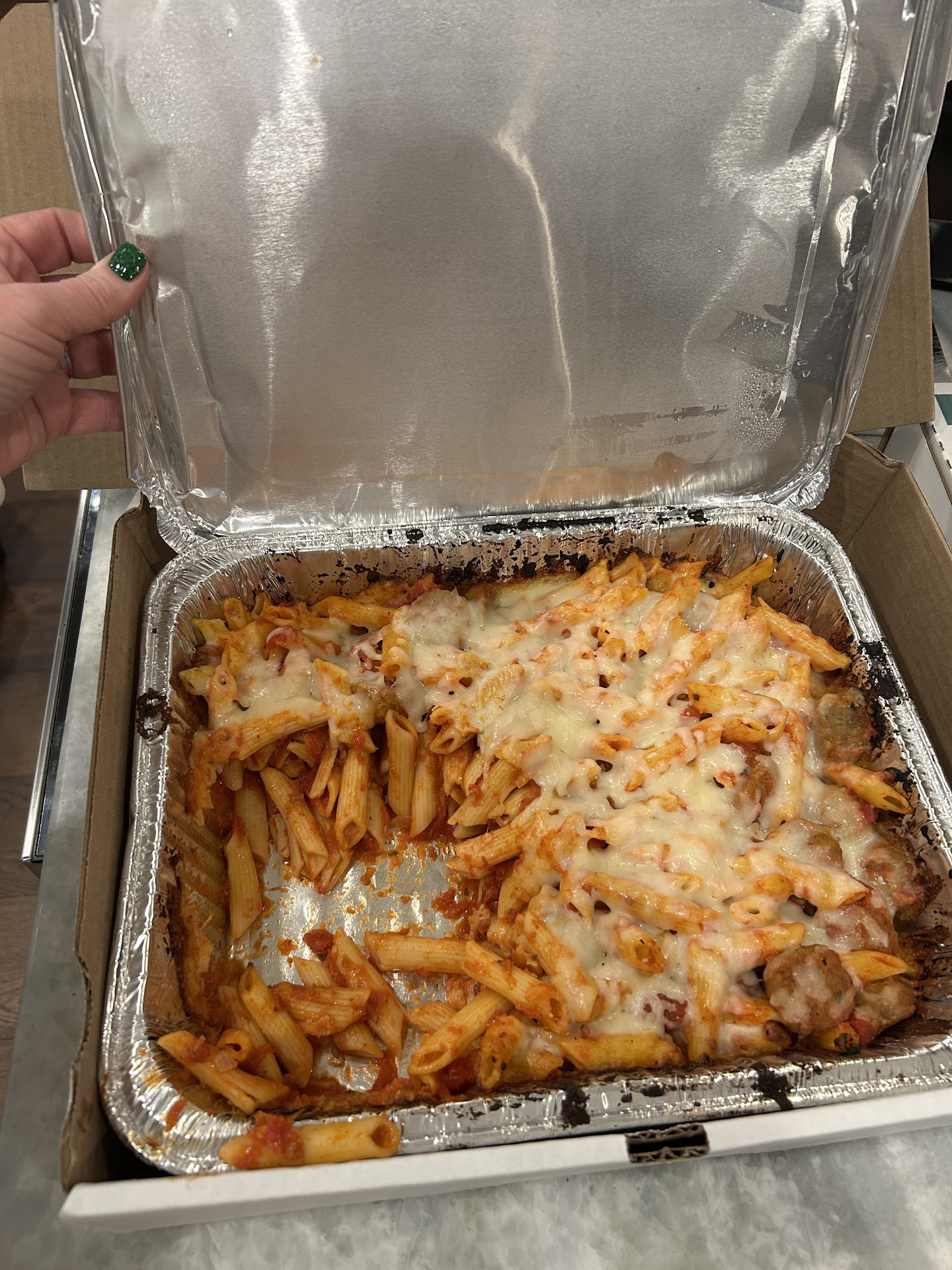 Hereâs how the happiest dumb accident turned me into a loyal customer! Busy night - no time for cooking - DoorD@$# to the rescue, right!? Wrong. VOCELLI to the rescue!! First time customer. Regular DoorD@$#er. We noticed tonight that Vocelli had been added to our dinner delivery app and decided to give it a try. I thought I ordered a chicken parm, a spaghetti & meatball, and a 12â pizza. What I actually ordered was a chicken parm, a cheese pizza, and a CATERING SIZE spaghetti & meatballs! đ In my multitasking expertise, I didnât even pay attention to the total, I just hit order. AaaannnnndddddâŠ.. I now have a HUGE container of spaghetti & meatballs. (Which is delicious, by the way!) The best part of the entire situation was how the driver, TJ, handled the whole situation. Vocelli fulfills their own delivery orders, even though the big name apps. When TJ arrived, he was SO nice in explaining to me how the order went through, and how in the future I can call them and could have saved myself TONS of money, even if I HAD intended to order such a gigantic dish of pasta! I just laughed. And laughed. And Iâm still laughing!! The good news is that we have teenagers!! I promise no one is mad over a gigantic pan of delicious spaghetti! Turns out, we live approximately a half mile outside their delivery area, but they will happily make the exception and deliver to us all while saving us $$$!!! The other happy part of this is knowing now that we CAN order catering size pastas!! Holidays are here, college kids and friends will be filling our home and theyâre all going to be hungry!! Next time we order we will order the catering size INTENTIONALLY!!