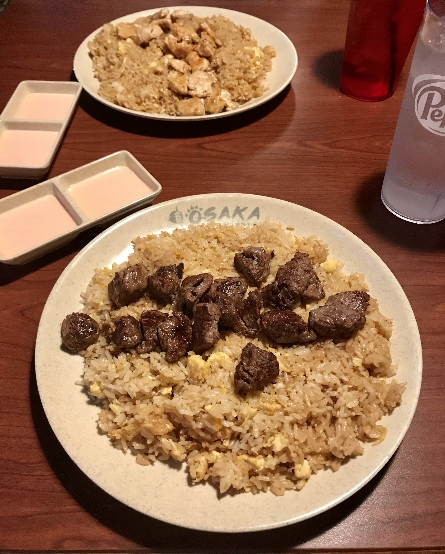 The filet fried rice came with the same veggies as I had on 9/3. The fried rice was standard. Good. The steak was cooked an acceptable medium and was twice the amount I received on 9/3.