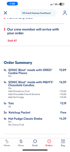 Read moreOrdered three dill pickle burger's add bacon and tomato two orders of tater tots two orders pickle fries a# 12 which was chicken we got the honey bbq two Oreo Reese's peanut butter master shake's two rt 44 drinks coke and root beer and two wakey packs with hot dogs fries and milk the burgers two didn't have the dill pickles and no bacon and tomato only got one order of pickle fries no ranch at all the chicken was so hard it could not be eaten and the shake's one had a hole in cup so it was placed inside another cup no Oreos and no whipped topping or cherry the other had no Reese's or Oreos In it. So a 48.:::$$ Order was not completed and half was not able to be eaten. So disappointing because the only reason I went there was for the pickle fries and pickle burger and the Oreo Reese's peanut butter master shake and did not even get that not sure it's even worth a star and sonic used to have the best service and the best shakes. The person who took the order could not hear through the intercom they sent out a girl and she told the burgers and said he should be able to get the rest of the...