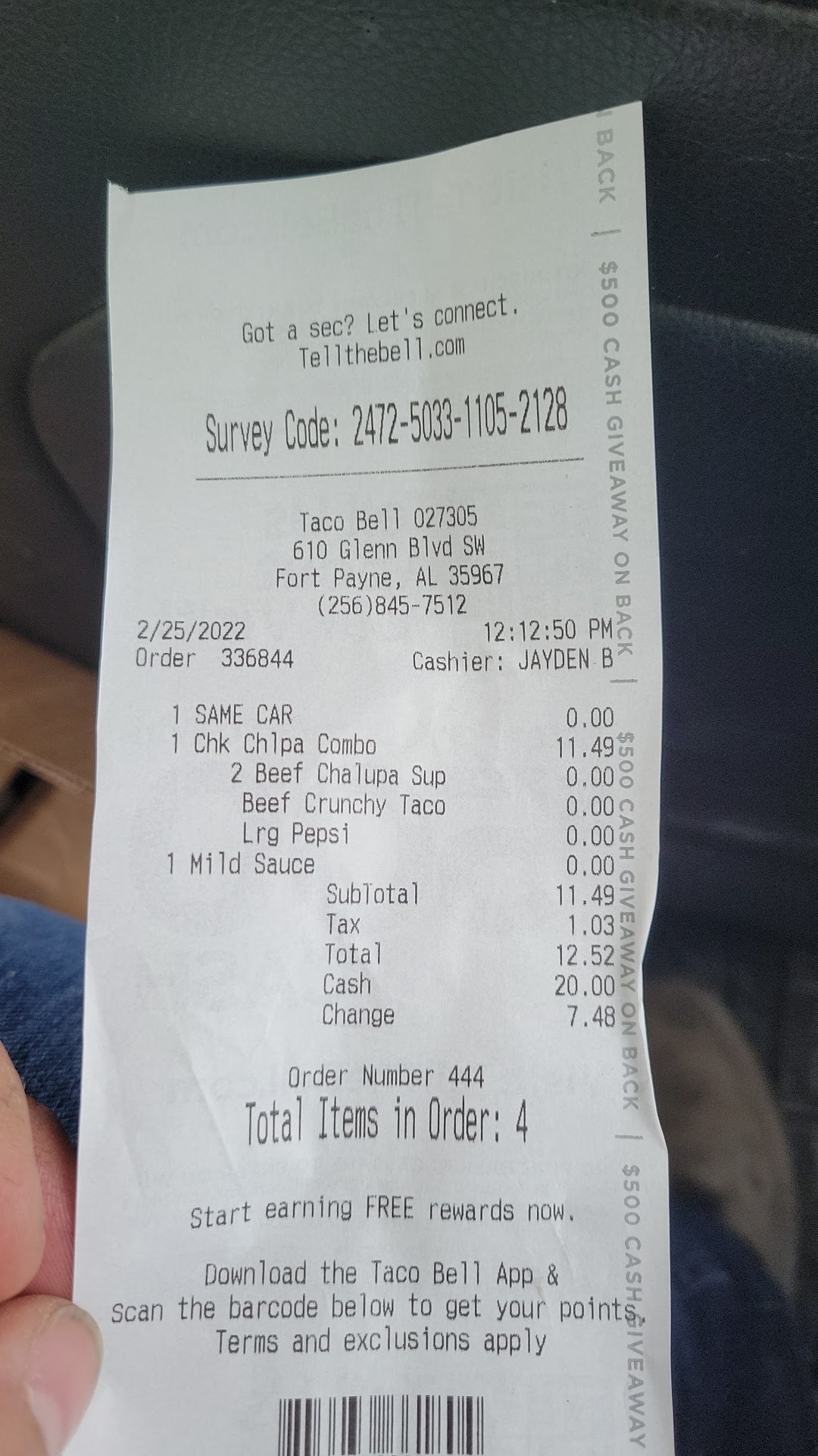 This is the worst taco bell that anyone could possibly go to. I would recommend going to any other fast food location in Fort Payne before you consider taco bell. The workers are rude and unhelpful, the food is expensive and even cost a whopping $3 more per item than locations in Chattanooga or Centre and for worse quality top. It feels like this location always burns the food, they cheap out on sauces or other ingredients by giving small amounts, and they for some reason elected to stop serving breakfast. Whoever runs this location and the Rainsville location is a poor manager. They seem to always think about money over a quality experience. There's no reason to charge 55% more for their food compared to other locations, I don't even blame the employees for being rude on my last visit because they seem to work for a miserable old scrooge who is running the local taco bells into the ground. If you want fast food, go anywhere else, McDonald's has excellent staff and dirt cheap prices, if you are craving tex-mex type food, head down the street to Los Arcos, which will cost you about the same or maybe even cheaper and you'll get more food and way higher quality food at that and it'll take about the same amount of time for them to get the food prepared for you. This taco...