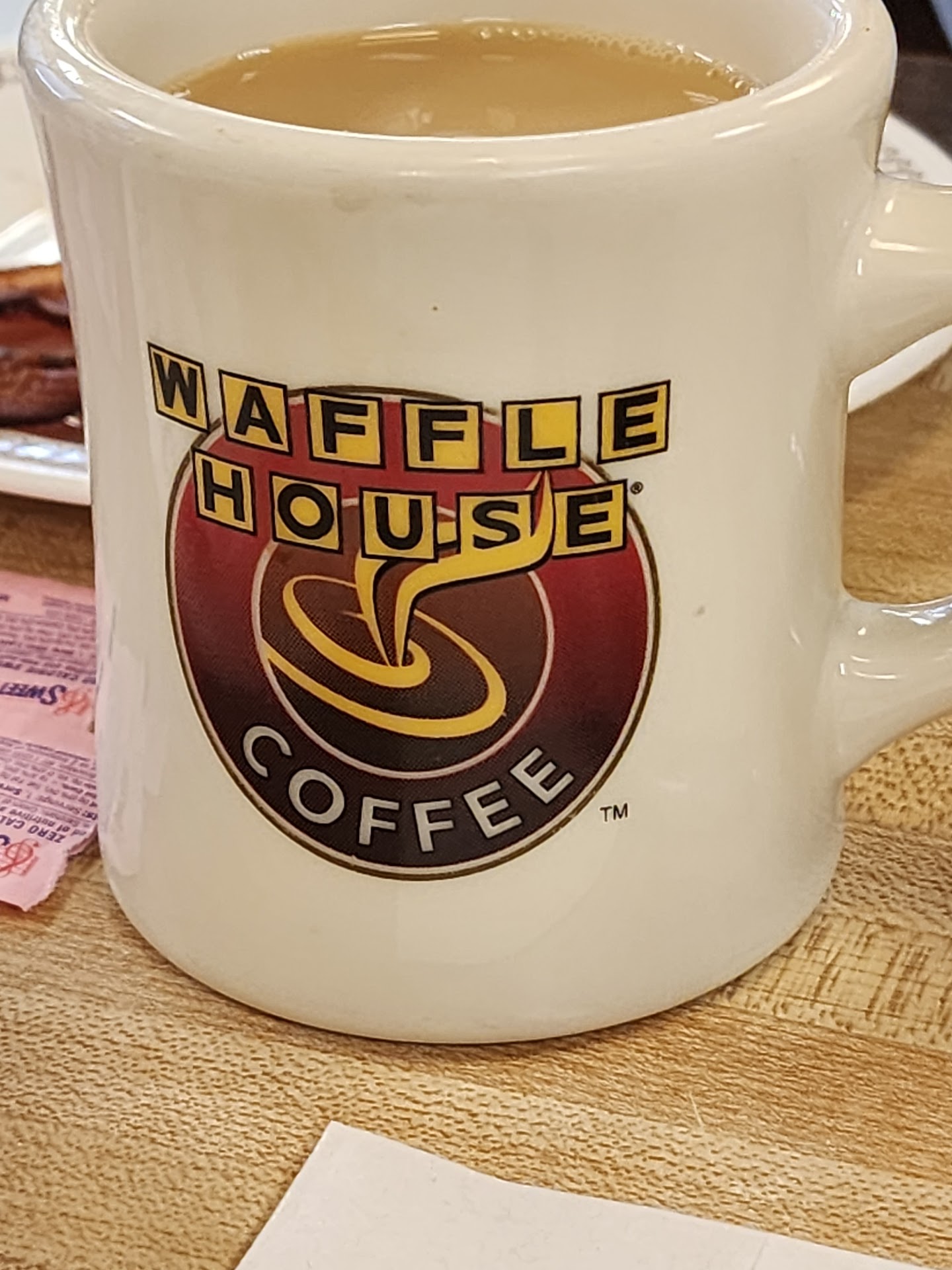Read moreFirst off it's Waffle House; so the bar is already set pretty low, but my Gawd! No greeting other than you're gonna have to wait until I clean the grills. Meanwhile my waitress has an in depth conversation with their pal from another restaurant about how another acquaintance got food poisoning from this place. Well hell 30 minutes later after the cook finish cooking a few last minute items for the people already eating, the other waitress decides to wash the dishes instead of help the cook . I would understand if it was busy but there was literally 3 people eating. By the way once they splashed the sink water into my drink I was done. I paid for my mixed drink and left. Alls well that ends well, I guess? If 0 stars were a thing. I would hang it on their heads like a Garfield air...