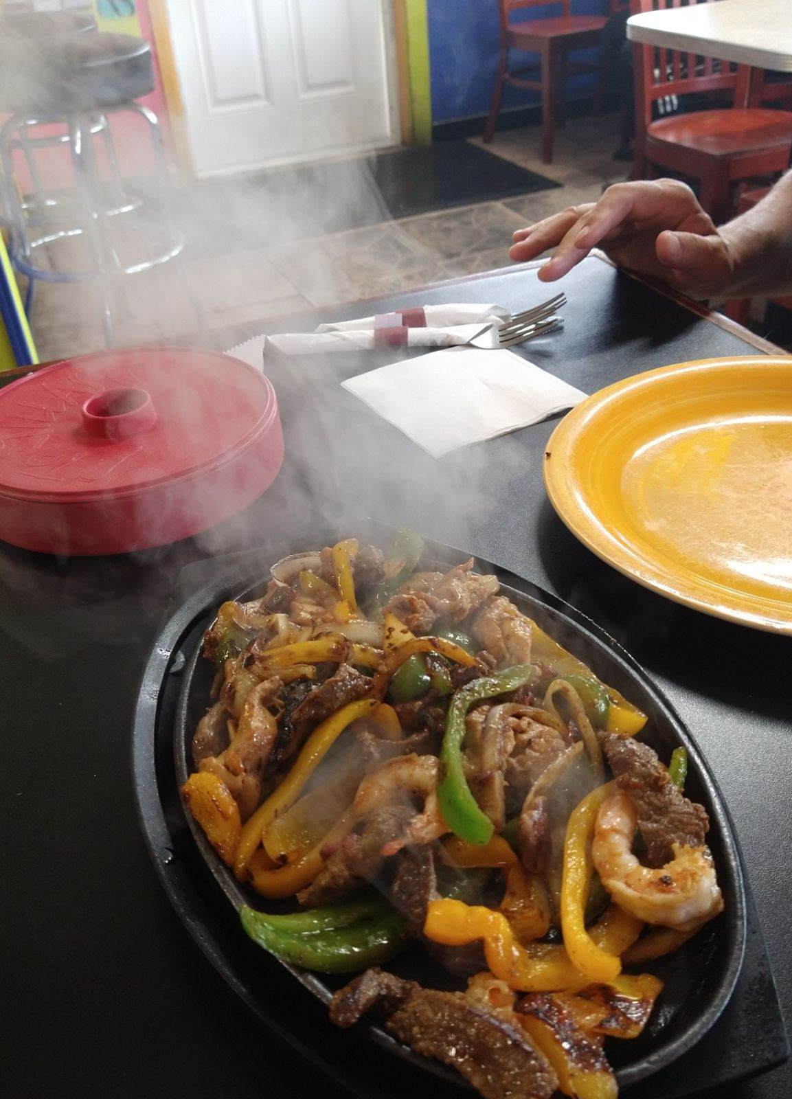 Wife, and I got a lot of recommendations about this place, so we gave it a try today. Let's start with the only two positives about this place. Food is really good, and the staff are friendly (no personality), but friendly nonetheless. Now for the negatives. Ordered the triple fajitas (chicken, steak, shrimp). When they came to the table, no shrimp. I told the waitress that it was no problem, and even pointed it out to her. Also pointed out that she had forgotten the tortillas. No big deal, mistakes happen. Then we waited.... after about 10 minutes, I walked up front to the other lady to get the tortillas, and she smiled then walked away. Few minutes later, she brings four of the smallest tortillas I have ever seen. That too was OK, I just ordered another order of them. Now time to pay the bill. Ticket comes, and we are still being charged for the triple, instead of just a double fajitas. I once again explained to the lady that there was no shrimp. We even showed her a picture we took. She went to speak to what we guess was really owner, and he said no, there was three shrimp on there. It was literally a $2 difference between the double and the triple. I'm not going to swear the difference, but I'm not going to be called a lair either. So for summary.... food was great, service was not , and customer service...