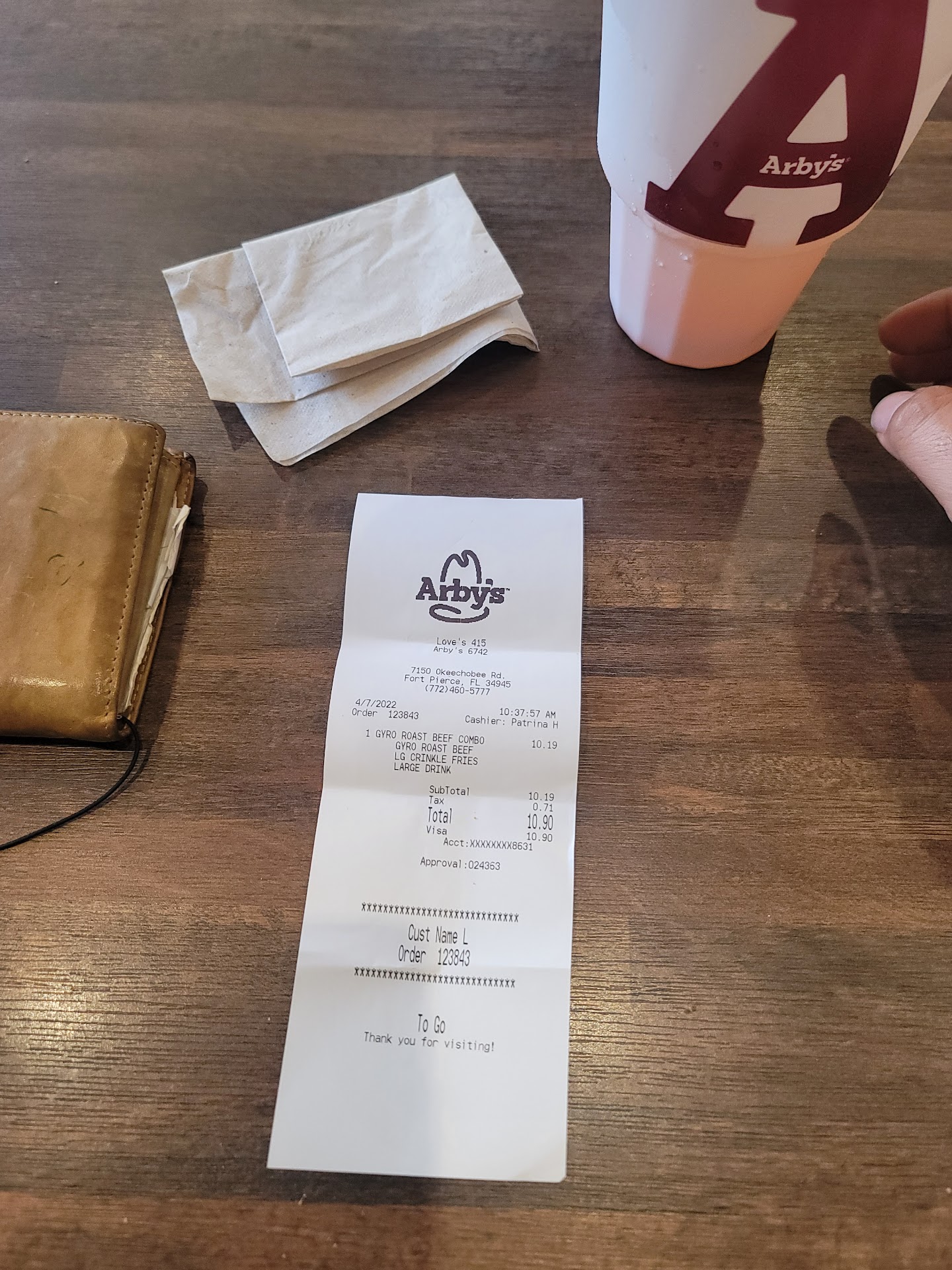 The food wasn't bad. It was fresh. Average to above average quality for a fast food restaurant. Kinda hard to not like Arby's curly fries when they are fresh.