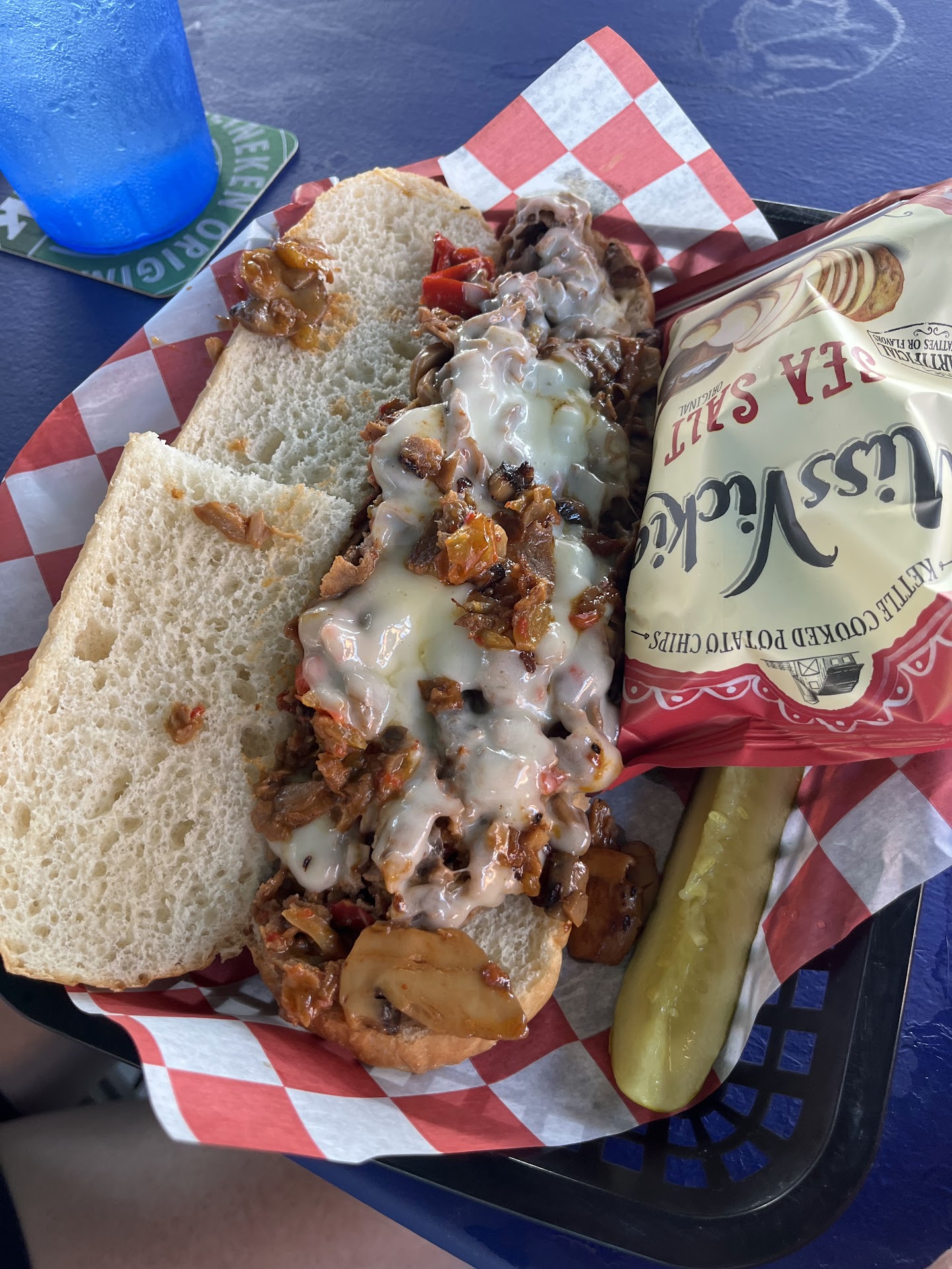 -Cons- I have two major complaints. My first are the dogs. I know being dog friendly appeals to some people and that is a unique feature. But honestly no one wants to hear dogs barking constantly. Not only that, but how can one be sure a dog is safe? Plus, it's kind of gross. Also, the restaurant doesn't seem the cleanest. I understand most of it is outside and that may not be the easiest to keep clean, but as was mentioned before, they could benefit from having bussers.