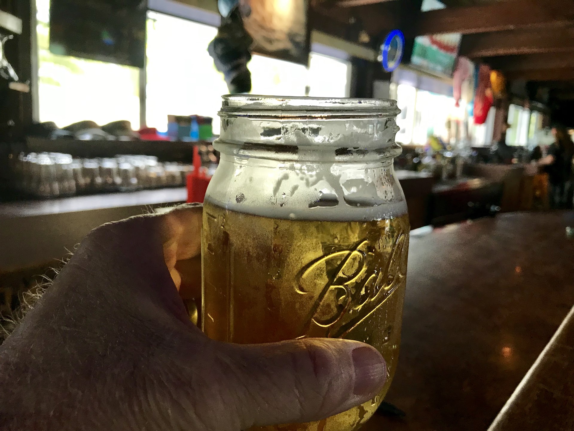 The cons however: the rum runners to-go are unfairly expensive for the convenience of being able to go home with them vs drinking them in the bar and they melt faster in the to-go containers. The building is not very clean, everything just feels sticky and the bathroom is gross unless you like filth and walking in piss. The bar is really really smokey, they have what seems to be a decent AC system and means of ventilation but it's pretty bad in there especially when it shoulder to shoulder. The drink prices aren't very competitive considering Hurricanes and the Inlet just next door.