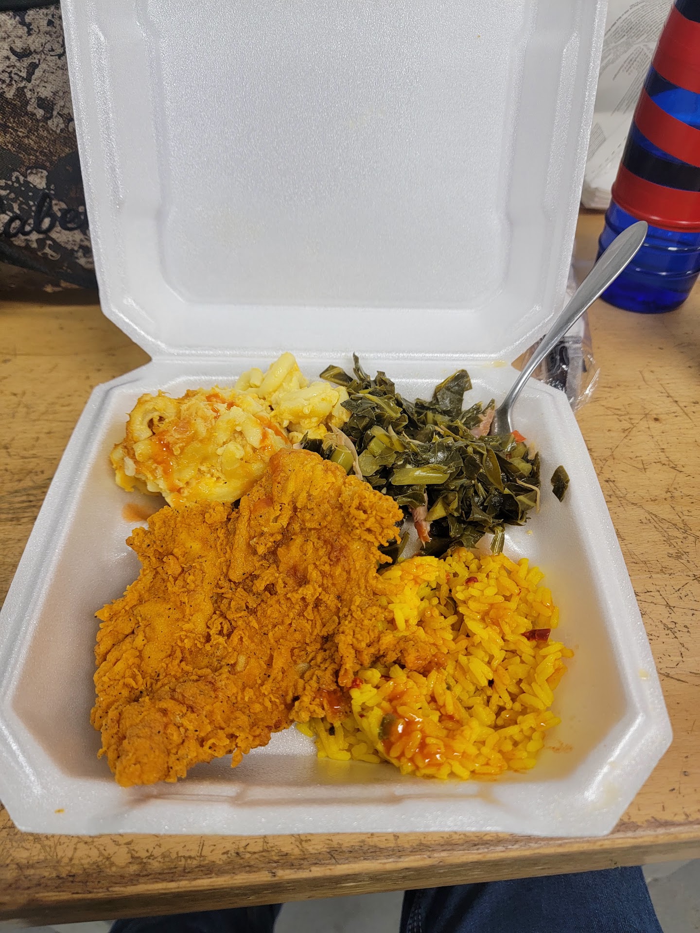 Ā Ā Ā Read moreI have to be honest the customer service is good there very polite and patient, unfortunately the food not so much I got the pork chop with smack and cheese and collard greens the pork chop was not fried properly the batter was not attached to the pork , it was seasoned but not to perfection I did not enjoy or finish it , I even tried to re fry it , I still didnāt like it !!! the Smack and cheese taste like a card board box, it taste like absolutely nothing I even tried to re season an bake that!! To no avail, still terrible and the collard greens were seasoned but extremely salty, your pressure gonna go right up from one bite Iām so sry to leave this review but...