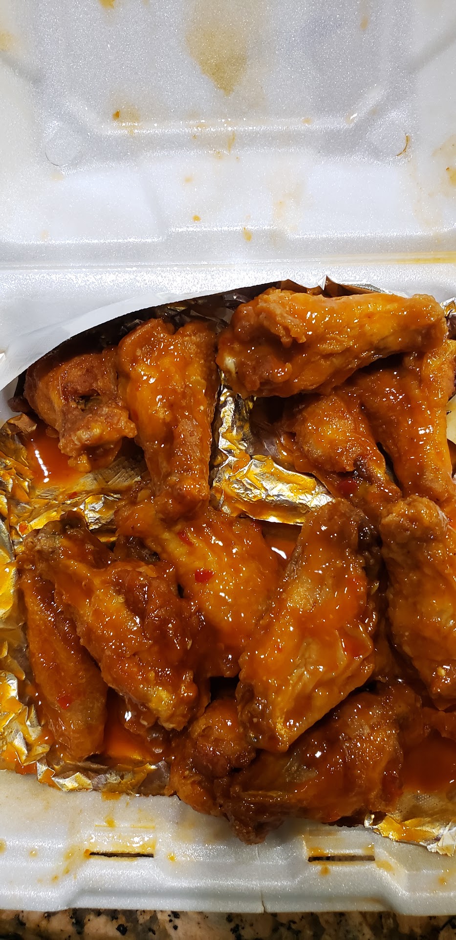 Read moreI have always passed them while driving and my coworker co-signed that their wings were top notch. I ordered a 10 piece with fries, a side of corn nuggets, and a fruit punch lemonade mix. The fries were pretty meh, they are generic frozen fries. The corn nuggets kind of threw me of because they are served with powdered sugar. Strangeness aside, I wish there were more nuggets in my side order but, they were good. The drink was super sweet, I believe I was told it was Kool-Aid. The real star of the show was the wings. I ordered Honey Hot, which honestly I don’t know what I was thinking, I never order that flavor, the cashier convinced me it was a popular flavor. I did not like Honey Hot, I will get one of my usual flavors on my next visit. Back to the wings themselves: there was a proportionate mix of flats and drums, they were fried to perfection - not over cooked, they were not skimpy and had a fair amount of meat on them. The staff was very nice as well. Like I said the cashier convinced me to try Honey Hot, I told her it was my first time and she gave me the top seller, I’m not mad about it. The restaurant was well maintained. The floor and...