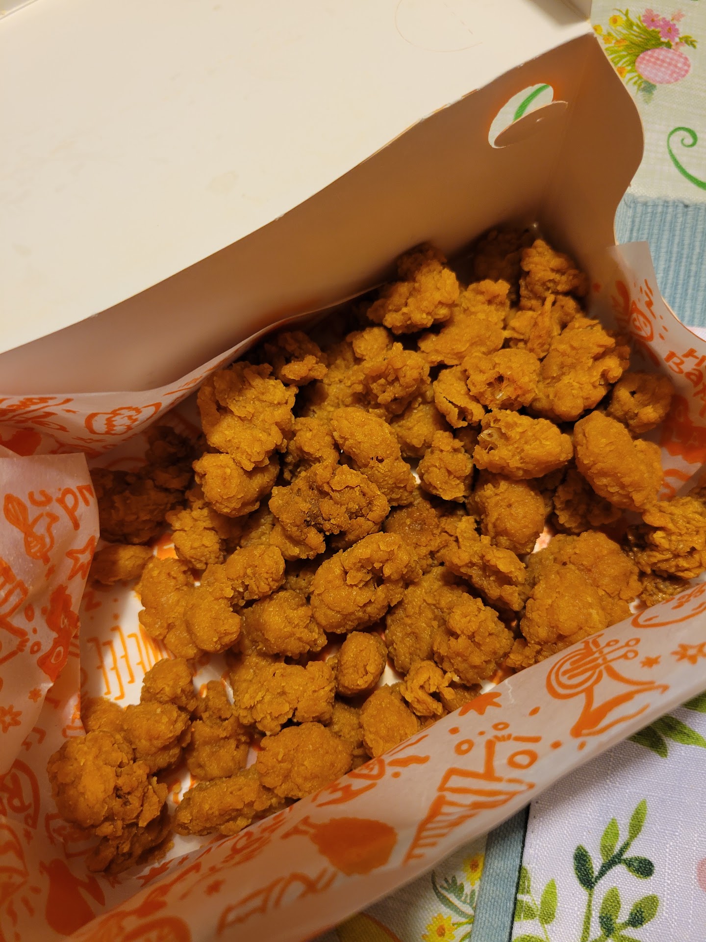 Read moreOrdered online and went inside to wait for it to be prepared (I ordered while parked outdide, so I knew I would need to wait, no problem). Ordered 2 plain fish, beans & rice, popcorn shrimp, boneless wings and mashed potatoes w/ gravy. Received 2 fish with everything on them that tasted more like month old grease than fish (after the crap was scraped off of them), mush, bean juice & a little rice, and little burnt nuggets of popcorn batter which looked like they may have been refried popcorn shrimp from that very same month old grease. The pototaes w/gravy were good, and the boneless wings were fresh, so they were good too (I saw them being cooked to order). Because I live 20 minutes from town, I was not driving back. I also didn't check my order (yes, I should have), but as I was leaving, a man came in yelling about his order, so I left. The young man who waited on me was pleasant, but most of the food was absolutely nasty. Pic of shrimp attached, but hubby trashed the sandwiches before I could get a pic of those. And please, don't give me the "we're sorry we didn't meet your expectations" excuse. Now that I've read the comments, you've been told repeatedly over the last several months, yet obviosly, nothing...