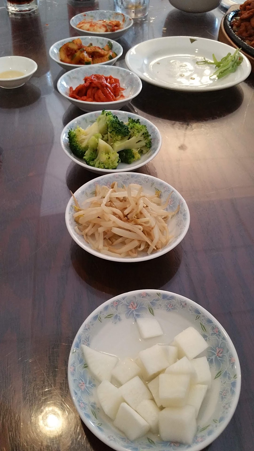 Anyway, we worked through it and ordered what we thought was our favorites. First thing she did was her to bring out a dozen small banchan plates including kimchi, spicy cucumbers, and sweet & tangy Daikon radish, to name a few. This was a really nice experience and one that was not included under the previous owners.