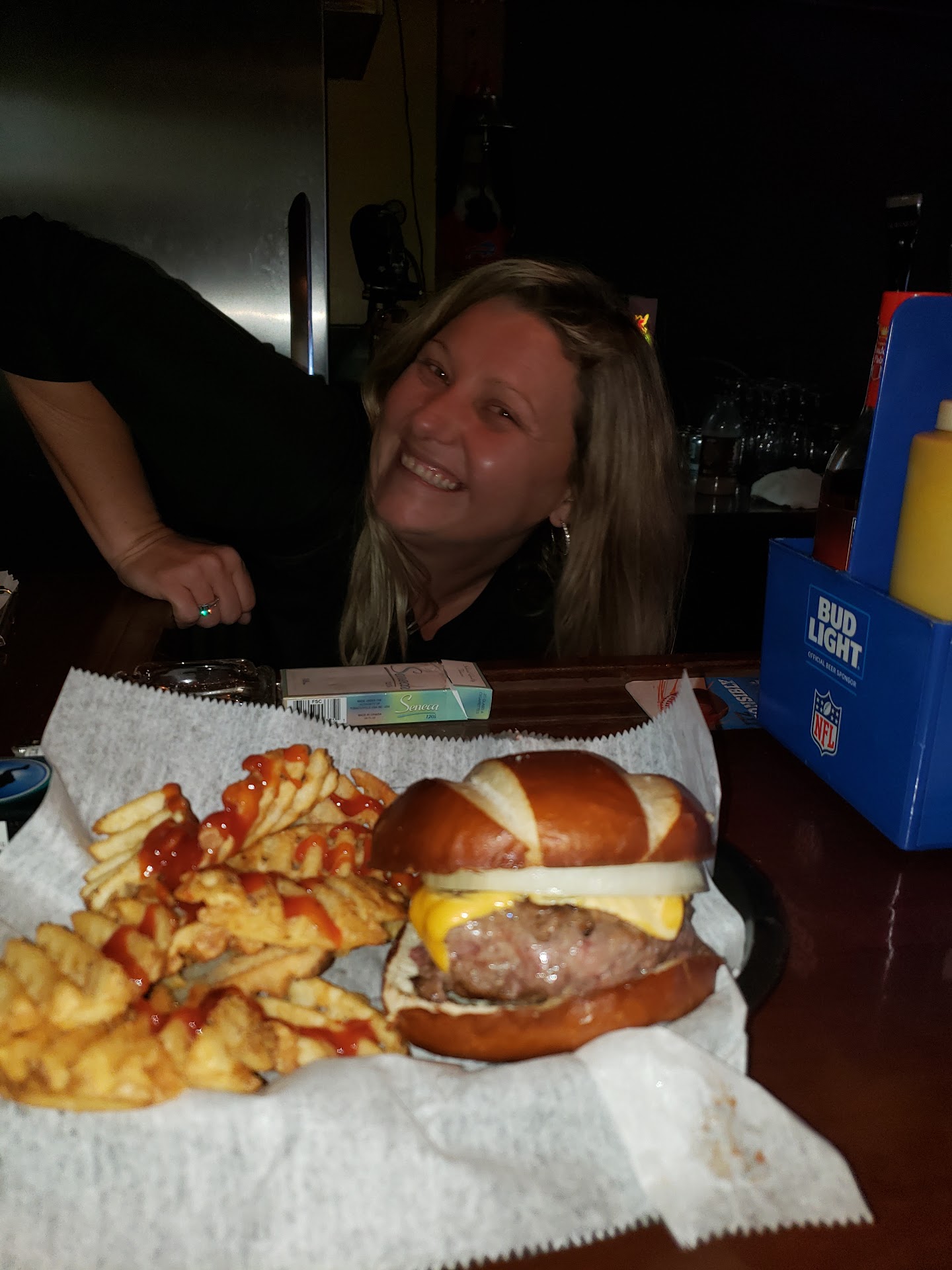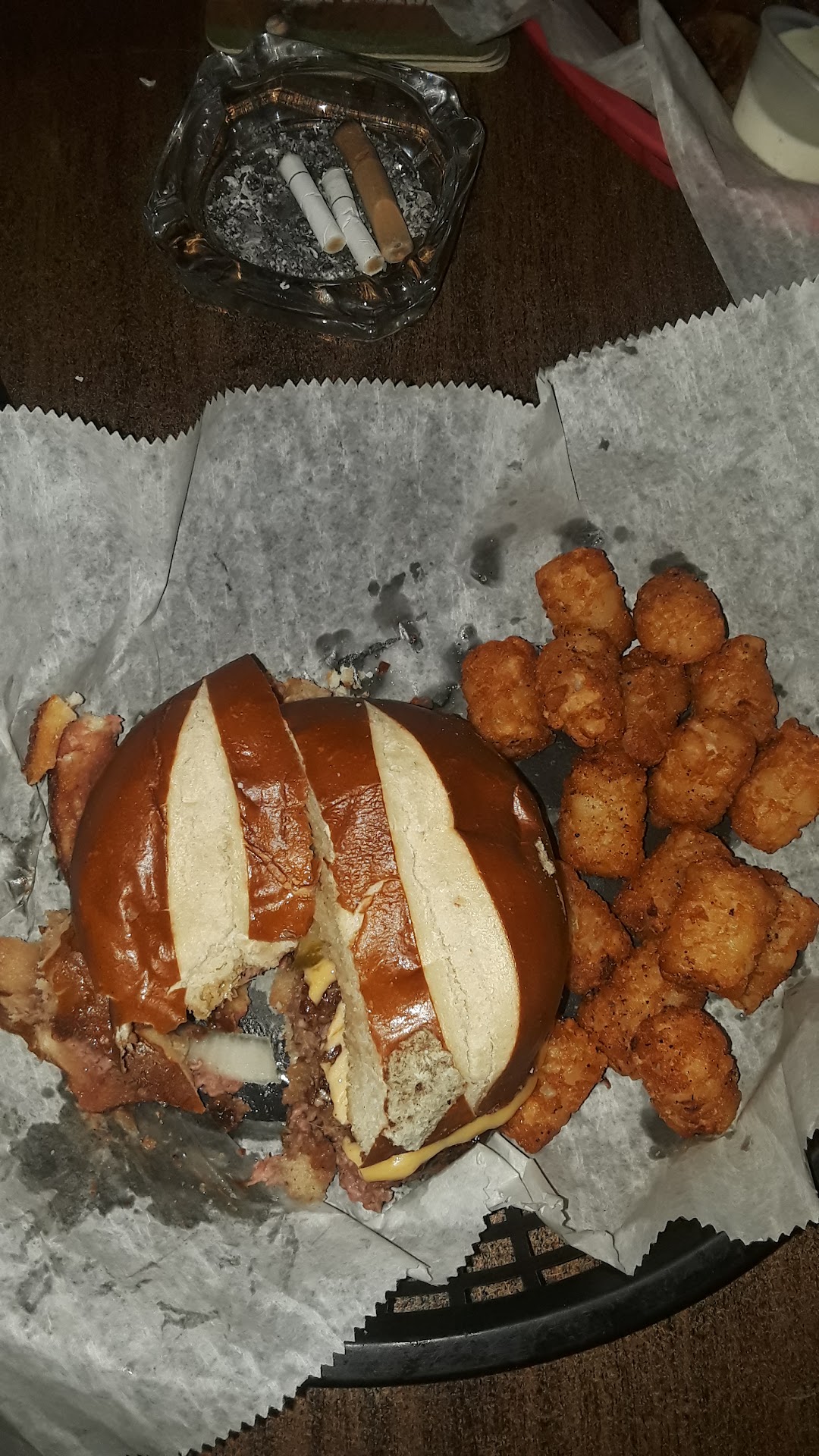 Read moreBurgers here are the best in town!!! They come on a pretzle bun and you build what you want on them. Sometimes they are missing bacon or overcooked or out of items, but it's still worth it. They are super juicy and delicious. Place is smoky and dark as hell but I'll still come for...