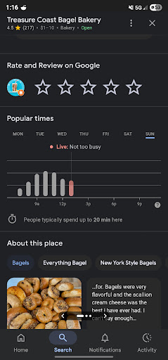 This isn’t the first time either — last time I came in, they shut down the kitchen 15 minutes before closing. Annoying, but forgivable. Today, though, was something else. To look at a case full of bagels and be told the only thing available is a toasted bagel with cream cheese while the team complains about being "busy” earlier — that’s not just bad service, that’s poor business. Google analytics say different. I bet the numbers in the computer reflect it.