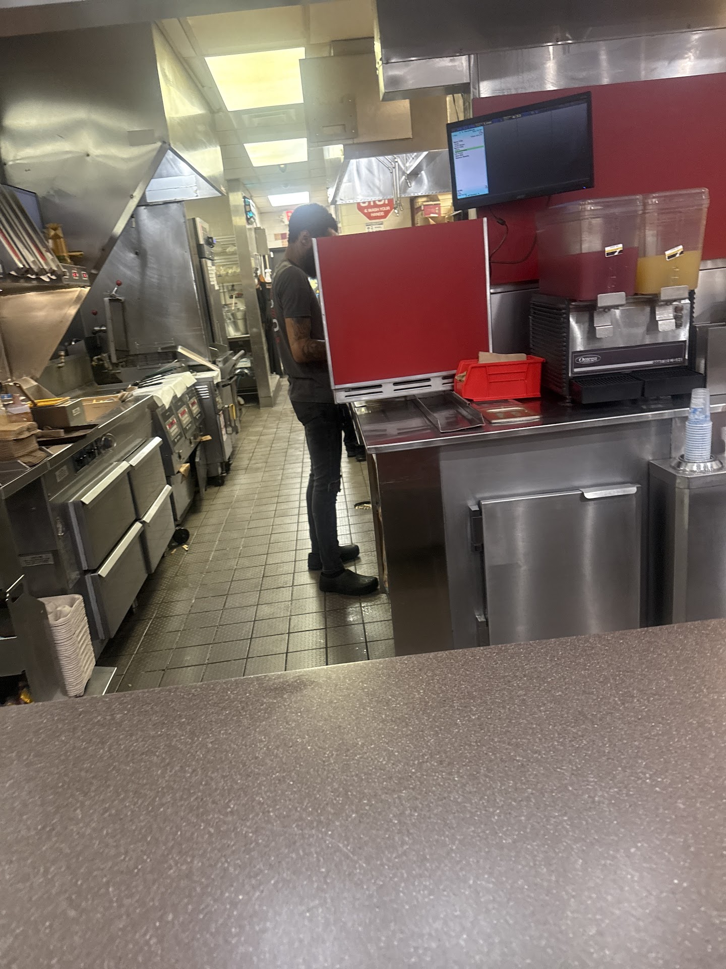 Read morePassing through, decided to grab an Asiago Chicken Sandwich combo to-go. Everything was good at first until they gave me the wrong sandwich. Luckily I changed my mind and decided to sit in so I didn't end up getting back on the road with the wrong food. Okay, swapped the sandwich in store, whatever. The replacement sandwich came out within like 2 minutes. Krazy but okay fast food, whatever. I'm eating and about halfway through the sandwich, I see RED, literally. My chicken sandwich was BLEEDING. I take the sandwich to the counter and show the employees and requested a refund. Employee who took my order was about to give me the refund then the manager came. Manager had no care in the world, didnt even acknowledge me but wanted to analyze the sandwich. She eventually walked over to the register, pressed some buttons and decided she would only refund me for the sandwich. Not the rest of the food as well, just the sandwich. So, you're telling me you don't care about a customer's health and you see the blood and won't even be courteous enough to give me a FULL refund? Krazy. I know folks will come here regardless but hey yall just break open your sandwich or something before you eat...