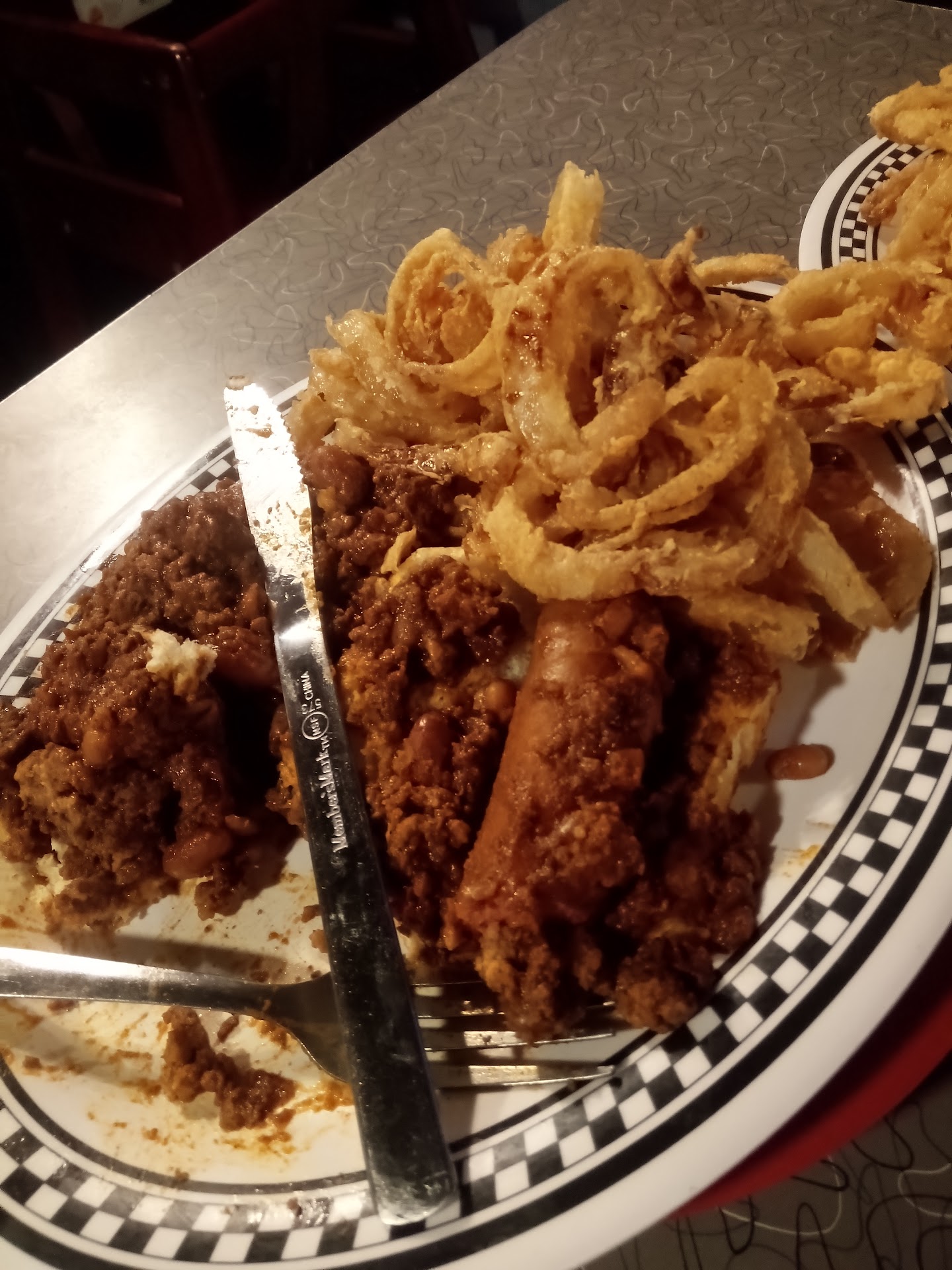 Worst food and service ever... And I mean ever. I am adding photographs. to prove how bad it is... But can't show the photo of my friend out front throwing up Next to the sidewalk because of his chicken fried steak. And the sidewalks were cleaner than the bathrooms.. the chili foot long dogs were not actual footlong Coney dogs but just two green hotdogs next to each other. The Green steamed hotdogs with a sloppy amount of chilly on top . I was hoping the chili would be edible cuz when I saw the hot dogs green color were not edible. I began to find slivers of melted sugar almost like caramel in the chili like it was getting pieces of sugar that they had obviously had thrown into the chili to make it sweet... We received dinner salads.. desert and oth er things that was never wanted but still forced to pay for.. I Put on our Bill I contested the bill... And they only laughed at me... A few minutes later I saw. Our waitress writing down what appeared to be my card number..on a sheet of paper..forcing me to stop the behavior that appeared to be theft.. they are terrible.. go to the bbq place across the street. Save your credit card info.. and barfing on their food and stay...