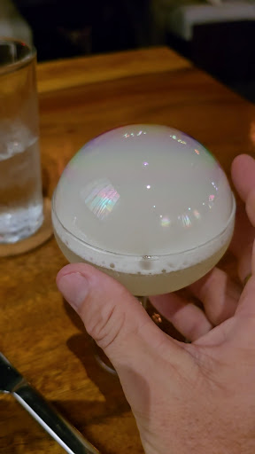 DRINKS!!!.... Since the mascot is a martini glass of course we had to throw back a couple of those. My dirty & hot was delicious... And the blue cheese filled green olive threw it over the top. Her peach mango was thick and sweet.... She ended up feeling no pain after her third! Brennan took great care in the creating our libations.