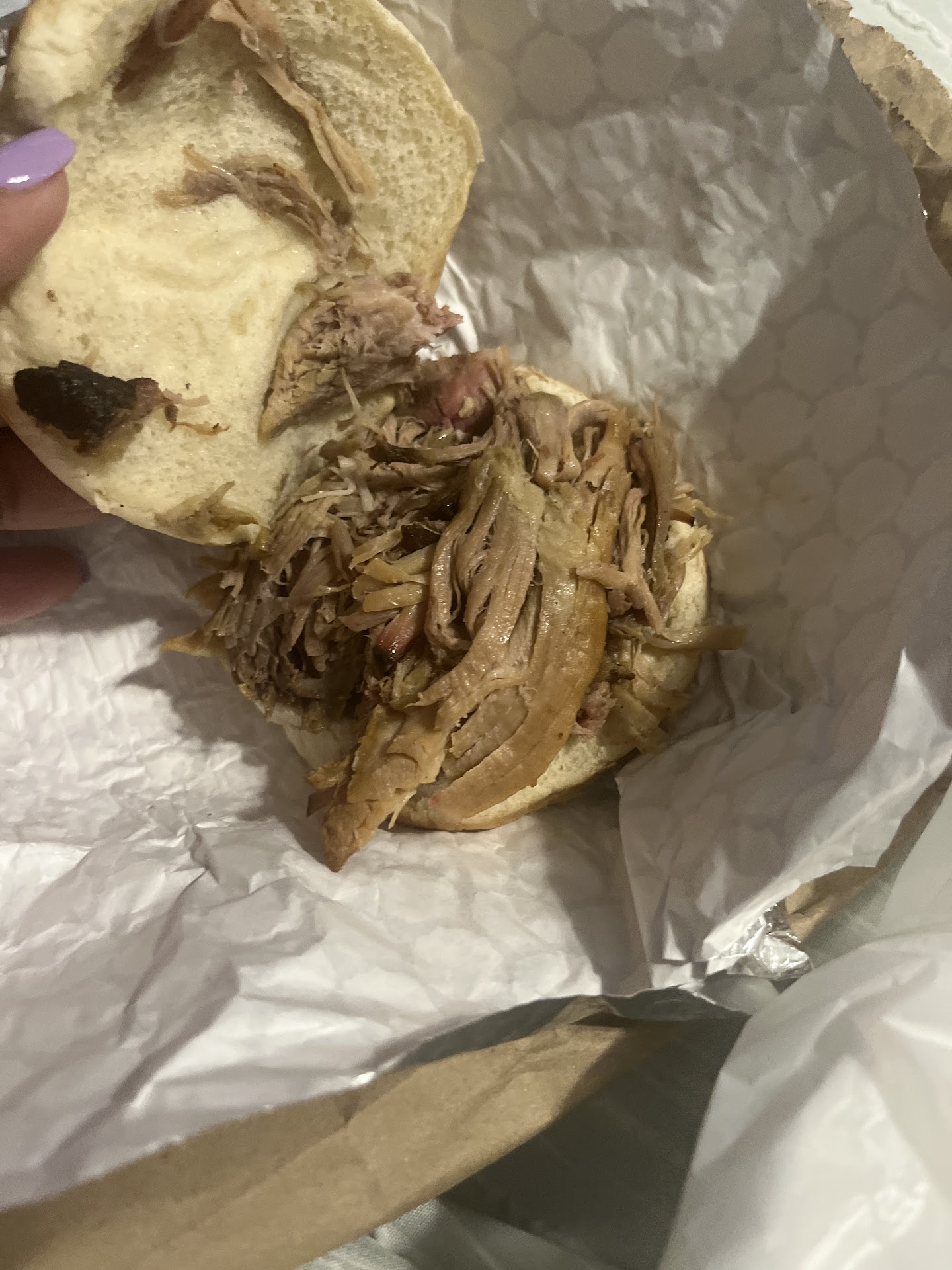 Stopped by at lunch while driving by. Saw three cars waiting, figured had to be decent at least. Got a lunch been slixed sandwich, the fries and drink for little over 9 bucks. For 9 bucks, I expected more. The sandwich was small, be prepared for that. The meat, sliced brisket, did have a small smoke ring, but light on flavor overall. Also, is sliced almost paper thin slices which does not help the look or flavor. Clearly not a lot of rub is used here, if any. This is not the brisket used to that has a depth of flavor, coming from Texas. The fries were good. Might have to try those with the pulled pork next time, as willing to give it another go, just to see if it was an off day. I can say against about 5 competitors in the area, it is...