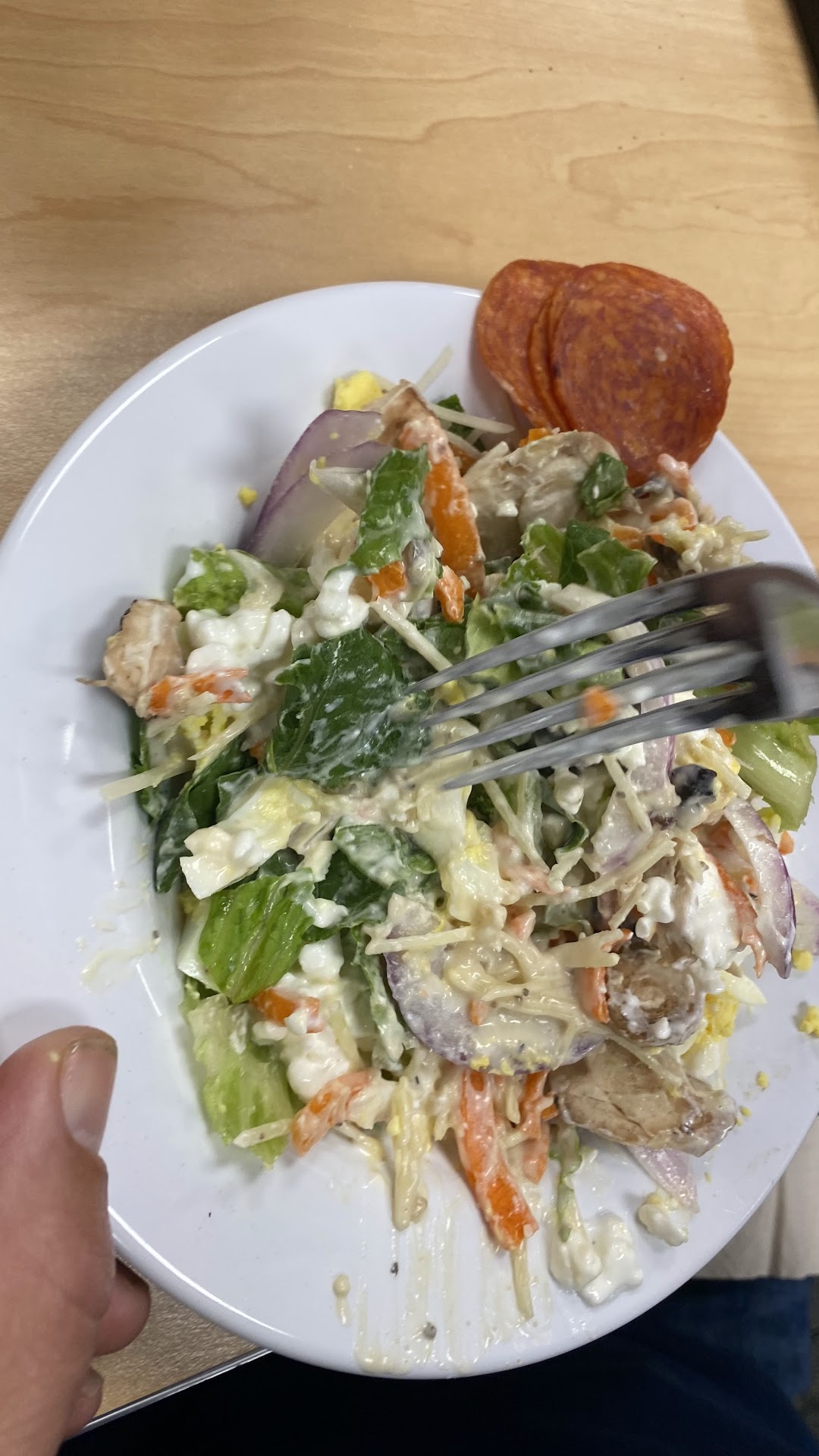 Firstly, the food. On my plate from the buffet, I got chicken breast, a roll, pizza, and some fruit. When I cut inside my chicken breast, it was pink. And I'm not talking about like a spot or two, the whole inside was. I put that aside, thinking it may have been a fluke. The pizza was next. I bit into it, and I swear it was hard as a rock. There was almost no sauce or cheese. The slice just tasted like bread if I'm being honest. The roll wasn't much better. It was also cold, and even with butter, it tasted kind of like unseasoned crackers. There was also a hair in my water, not much needed to say for that. I give 2 stars because the fruit was incredible. Pineapples, oranges, cherries, strawberries, everything popped with flavor. They were juicy, sweet, and very fresh. The fruit saves the food, which gets two stars. For the food, I think a thorough or just check of the food before opening would do wonders. Also, I would love if the food could be kept warmer. After food, we go to service, which, on a little bit higher of a note, is 3 stars.