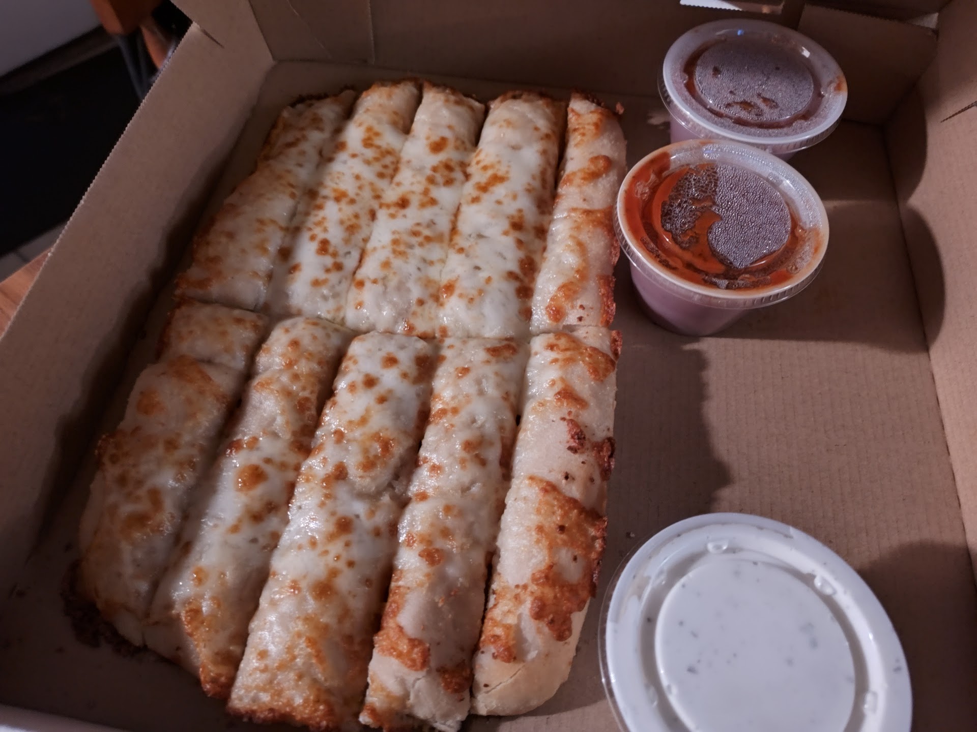 The food was delicious and freshly cooked, not something that was frozen and reheated. I ordered a Supreme pizza that had plenty of toppings unlike most places that go light on the toppings. We also got cheesy breadsticks that came fresh out of the oven with ranch and their pizza sauce. The breadsticks were hot and soft with plenty of cheese on them. My daughter loved the breadsticks. On top of this they gsve my daughter a cup with a top and straw instead of a regular cup which is important for a young child since they are prone to tipping the cup to far when drinking out of a straw.