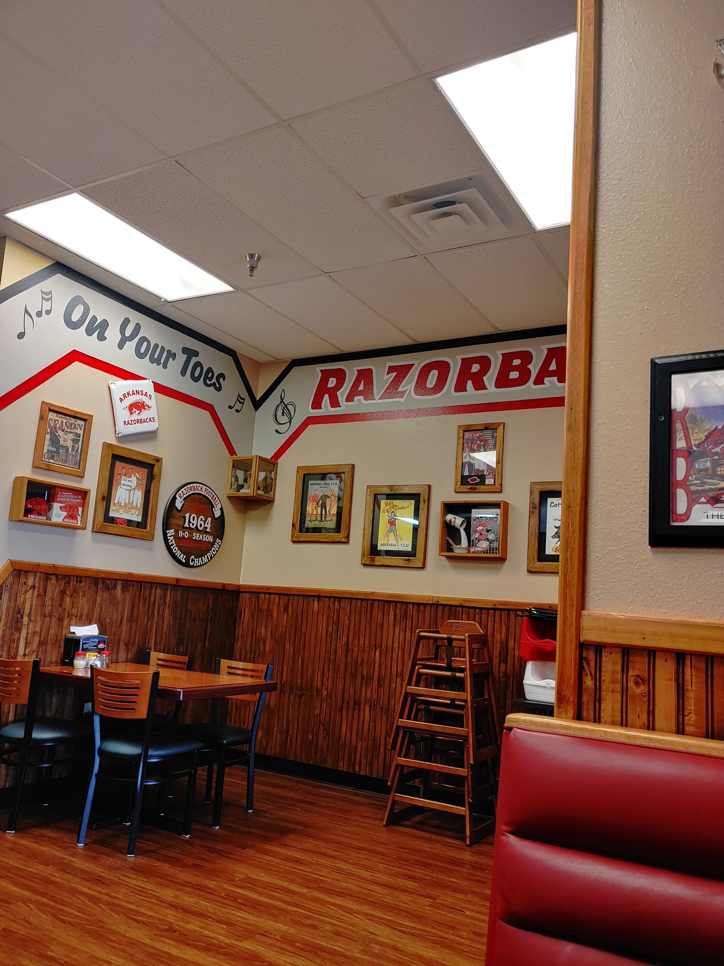 This is the best place to break down! Ford 250 Super Duty sputtered to a DRT one crisp winter Eve. There was a fine drizzle and naturally the temperature was hovering just above freezing. I was just able to coast into the parking lot. Fortunately the lot was empty and I could begin surgery. Long story short. I was stuck for two days. I made a huge mess. Not to mention took up parking space. I figured any time someone would complain and I'd have to tow. Which I couldn't afford. I was down to a few bucks and still needed another part. Jim's Razorback waitress was first to come out. She gave me pizza and her phone number. She came out a lot. She was really nice. Then Jim gave me a ride. Unsolicited, to Wal-Mart, drove off and left me. Ha. Just kidding. He waited patiently for me as I had a wire transfer coming in. It took forever. He then took me to AutoZone. We returned and I was able to complete the job. Fired right up. I had lost my hope in humanity by this point in my life. I had been through some terrible experiences. I fully expected to be harassed and maybe even fined or jailed. But the opposite happened. I should mention, Subway allowed me to use their electric. As did the cleaners next door. Thanks y'all,...