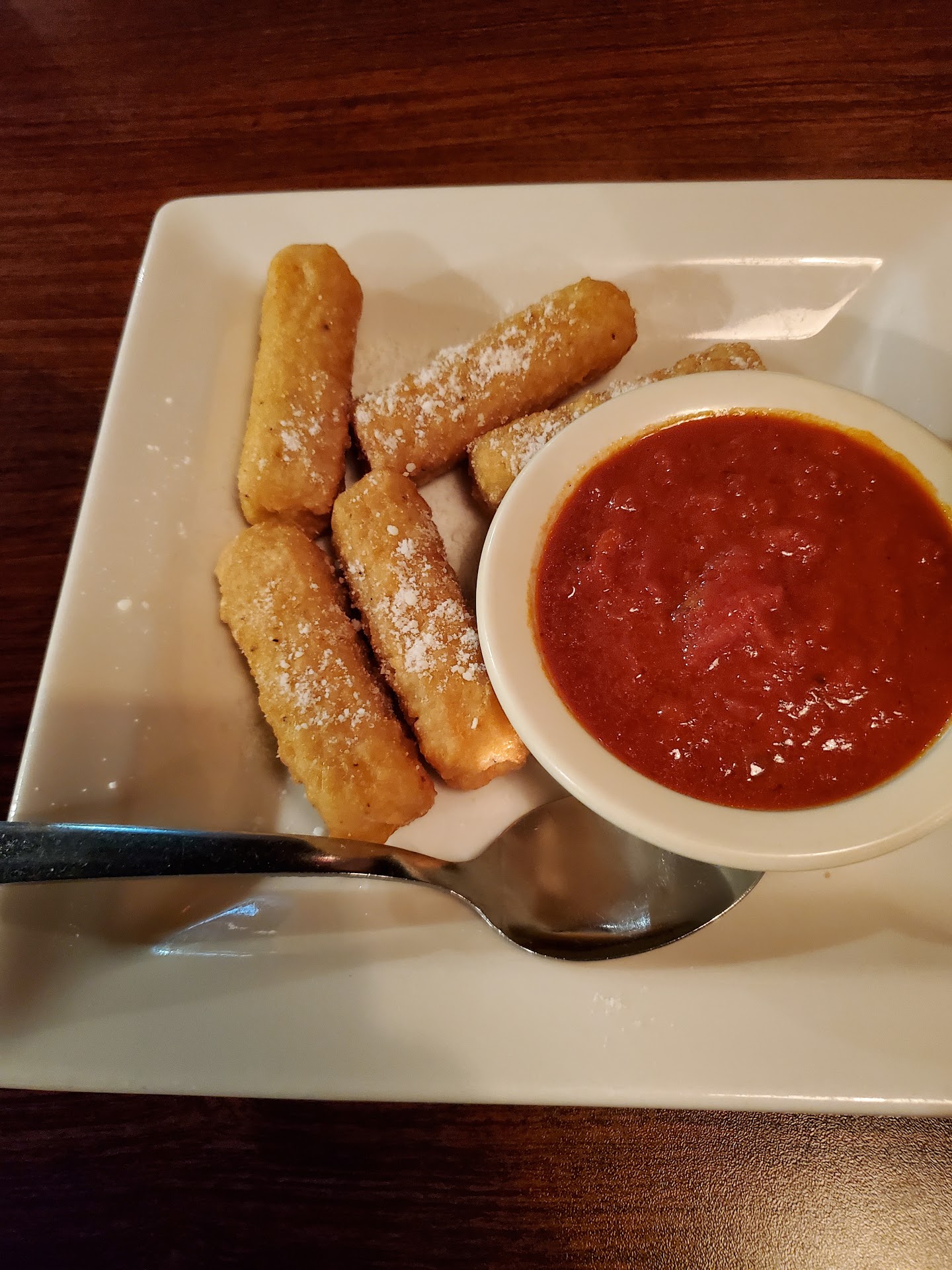 Middle of the road Italian at top price is my biggest issue. We all know how cheap pasta is, so high quality ingredients are kind of expected to explain the cost. I ordered chicken tortellini miamodo. The chicken was colorless- the menu said sautéed, but the color, texture, and blandness really tasted like it was boiled. The dish is described as sauteed chicken over tortellini tossed in a wine sauce with tomato and broccoli- the latter i swapped out for mushrooms because broccoli tastes like it smells (sweat and methane.) I swear I didn't order soup- but it came in a bowl with a spoon and everything was literally floating in a flavorless wine sauce/chicken stock. I usually love tomatoes, and I know they are out of season and cooking them can remove some color, but they were barely blushing pink slicing tomatoes. Romas or on the vine tomatoes are much better options for cooking and still have color and flavor in the off season. If I'd known I was going to get faded beefsteak tomatoes floating in a taupe, cornstarched mystery liquid, I would've declined. Nothing special about the tortellini, not bad but not great; overcooked by about a minute. I haven't been anywhere that doesn't overcook pasta- with that said, my boyfriend's spaghetti noodles were the closest to al dente I've bitten into at any Italian place, so excellent job there. His dish was slightly more flavorful than mine. He got the chef's special sans artichoke (he's a hater, I guess) but had the same issue with his chicken- offputting texture and the only color came from the sauce. I tried dumping a hefty tablespoon of red pepper flakes into mine along with some powdered parmesan to give the dish some sort of flavor, but I couldn't save it. Red pepper flakes, how could you fail me like this? Once upon a time, I believed they could save any dish. I'll pretty much eat anything if it's spicy, but uh, not that, no thank you. I would've gladly washed the taste out of my mouth, but when I picked up my water cup, it was sticky, so I dunked my sticky fingers in it to clean them and cleansed my palate with the bread.