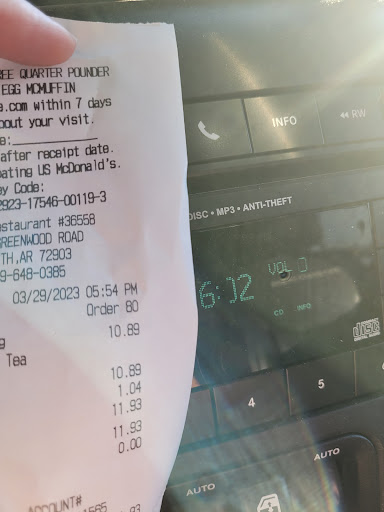 There are way too many places in Ft Smith to eat at to deal with the drama here. I walked in, there were 3 people in line in front of me. No big deal. I waited. 16 minutes later I get up to order, and when I pay I go to get the receipt and it's not my order. The previous couple had ordered on the app and not paid, and set the receipts off on a chain of everyone getting wrong orders. They fixed that, the kid at the register was very apologetic but the girl that came to help him was very demeaning and rude to him. I go sit down and 21 minutes later they bring me my food. Should have been a burger and fries, instead the bag had nuggets and fries. I take it back up, and they say they'll fix it. I ordered a double quarter pounder, 13 minutes later they bring me a big Mac and the same fries from the screwed up first attempt (they didn't even take them out of the bag). I tell them no, I didn't order a big Mac and they ask for my receipt. I tell them the kid didn't give me one (at no point have I left the front if the lobby by the counters because they hadn't given me my drink yet either) and the lady that handed me my food said "well then I guess you'll be happy with a bigmac" and laughed. I looked at her, not really sure what to say, and she turns and hands me a double qp and the same fries and walks off. I had ordered it with no onions, but the one they gave me was LOADED with onions but I sure wasn't dealing with sending it back again. All total I was here well over an hour. In that entire time, EVERY single order they sent out was brought back up to the counter because it was the wrong food or missing something. Every other time the door opened it was someone from the drive through coming in to fix their order. Right before I left, an employee was walking around to each table with a pencil and paper asking what each table had ordered because they couldn't find tickets and orders. I watched one of the workers drop a wrapped burger on the floor, then put it on the tray. He put it on the tray, then picked it up like he was going to trash it, then put it back. About the facility: The tables were clean, the drink station was very clean. The women's restroom was clean but there was no toilet paper, and when I pointed it out the young man was very apologetic but noone went in and restocked it. The kiosks were closed down "because of Covid" and they don't have the tables numbered so that you can order from the app without having to go to the register. Parking is a nightmare: the drive through traffic leave you stuck in your parking spot forever waiting to let you out. Avoid this location...