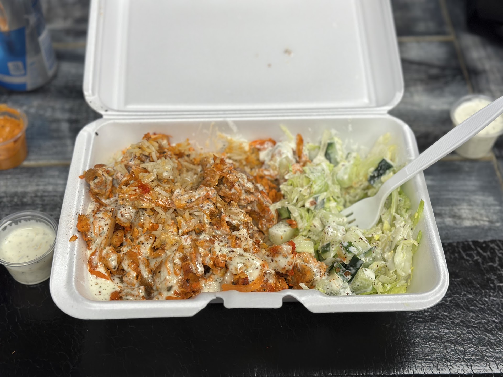 As someone who can only eat fish or poultry, I opted for the chicken over rice, and it was absolutely delicious. The chicken was perfectly seasoned and tender, served over a fluffy bed of rice that was both flavorful and satisfying. Every bite was fresh and well-prepared, making it clear that the ingredients were top-notch.