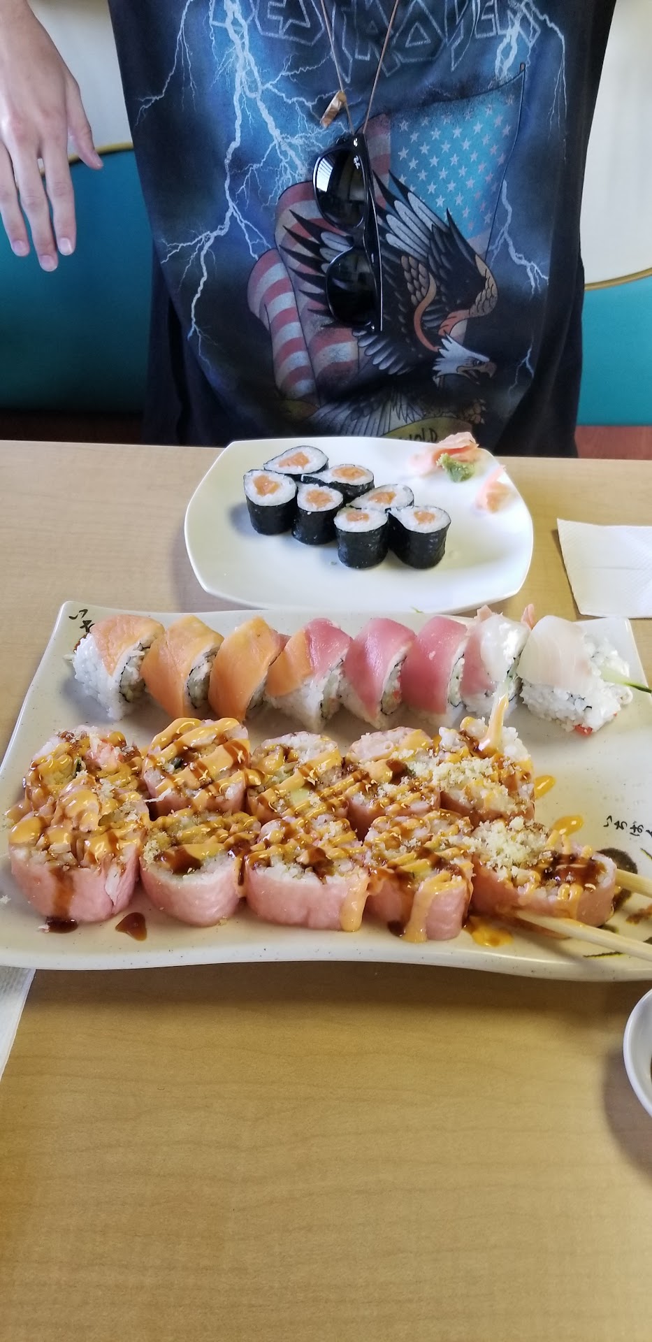 Read moreRead the one star review. And I agree with a few things. For one, if you have ever ate any sushi from Fuji's, you'd know that you're paying the same price for your sushi from both restaurants. But not the same quality. At ninja's the quality is not the best. I could tell that the avocado was not "fresh" simply by looking at it. And then biting into it. Not the best is all I can say. Even the rice and ingredients in general made me say what the eff. Now, that guy with the one star review did mention that they serve the food on foam plates and cups. Look, if I'm going to pay for food at the same price as a "high class sushi place" then yes I expect the same service. I was dumbfounded at this, mainly because they are a restaurant. If this restaurant is trying to portray themselves as a picnic like restaurant then I understand the foam plates and plastic silverware. But obviously they're not trying to do that. Because of the food they're serving. Last thing I also want to point out is that it smells like grease. And when you walk out, you smell like grease. Such a Great place for a first date. (Not)