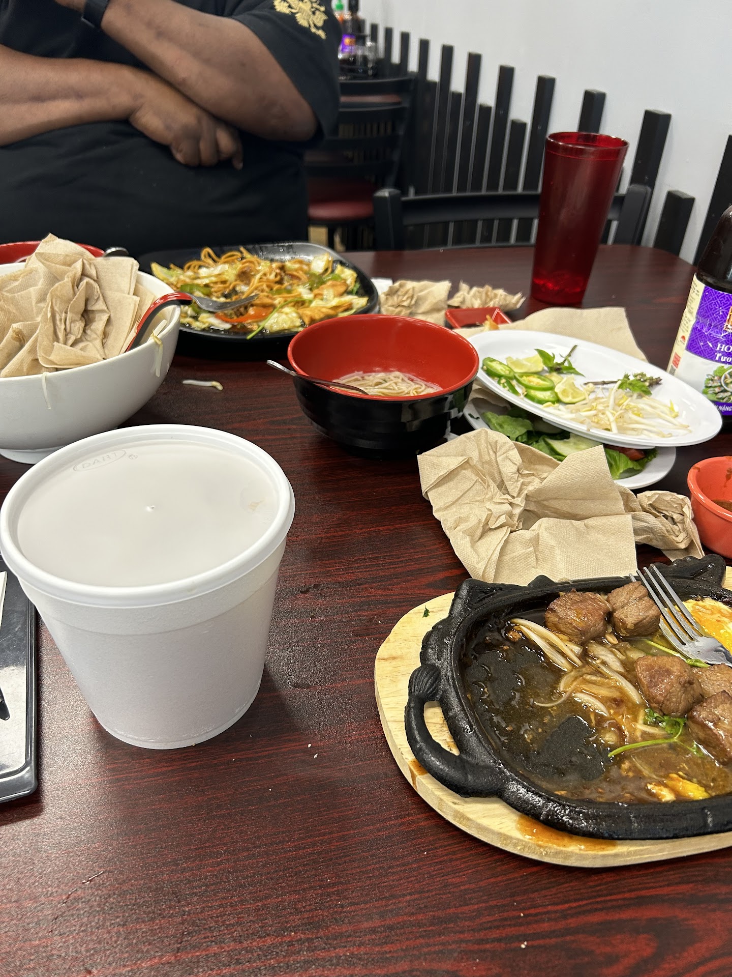 Read moreGood company bad food🤷🏽♀️ Look I love food but I just couldn’t get with the bland taste of everything except our fried chicken wings, we got lemon pepper flavor and it was delicious. The service was good but seemed the girls was tired but friendly. The combination pho had no flavor, the sizzling beef plate ( small plate) the combination lomein was a big NO. The meat was chopped too think and big hard to eat chunks and the grease had made a big puddle. Our spring rolls 🤦🏽♀️🤦🏽♀️🤦🏽♀️ taste like they were premade so it can be easier to serve them quickly but, I’d rather have made-to-order spring rolls, must hard and chewy!!! I spend almost $70. But got a military discount so ended up spending a little under $60. DONT WASTE YOUR MONEY if you’re into big bold flavors and enjoy high quality ingredients. DO YOU though👍🏽 Overall I won’t be back but I tipped because they were some sweet professional girls, I’m glad we tried it and I hope they can...