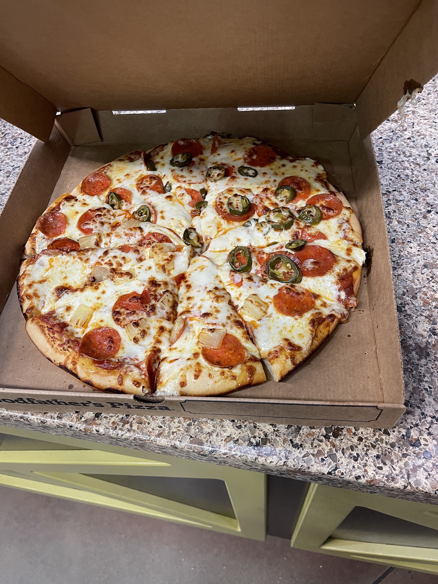 Read moreSo, we got here and ordered a meat lovers pizza. We had to wait around 3-4 mins on our table before the waiter finally showed up and got out drinks. Which were two waters, but the thing is, the waiter didn't give us a single refill. So we just sat there for about 15 mins waiting for our pizza. And once we got it and opened it, it was a disappointment, to say the least. It looked no better than a frozen pizza. And the thing is. A frozen pizza tastes better than whatever we have. It was the most abysmal tasting pizza we've ever had. I still had to wash out the after taste rn as I'm writing this. And I'm not writing this just to be rude. I'm venting because it really was THAT bad. I never write bad reviews about anything. But I think people have to know about how bad...