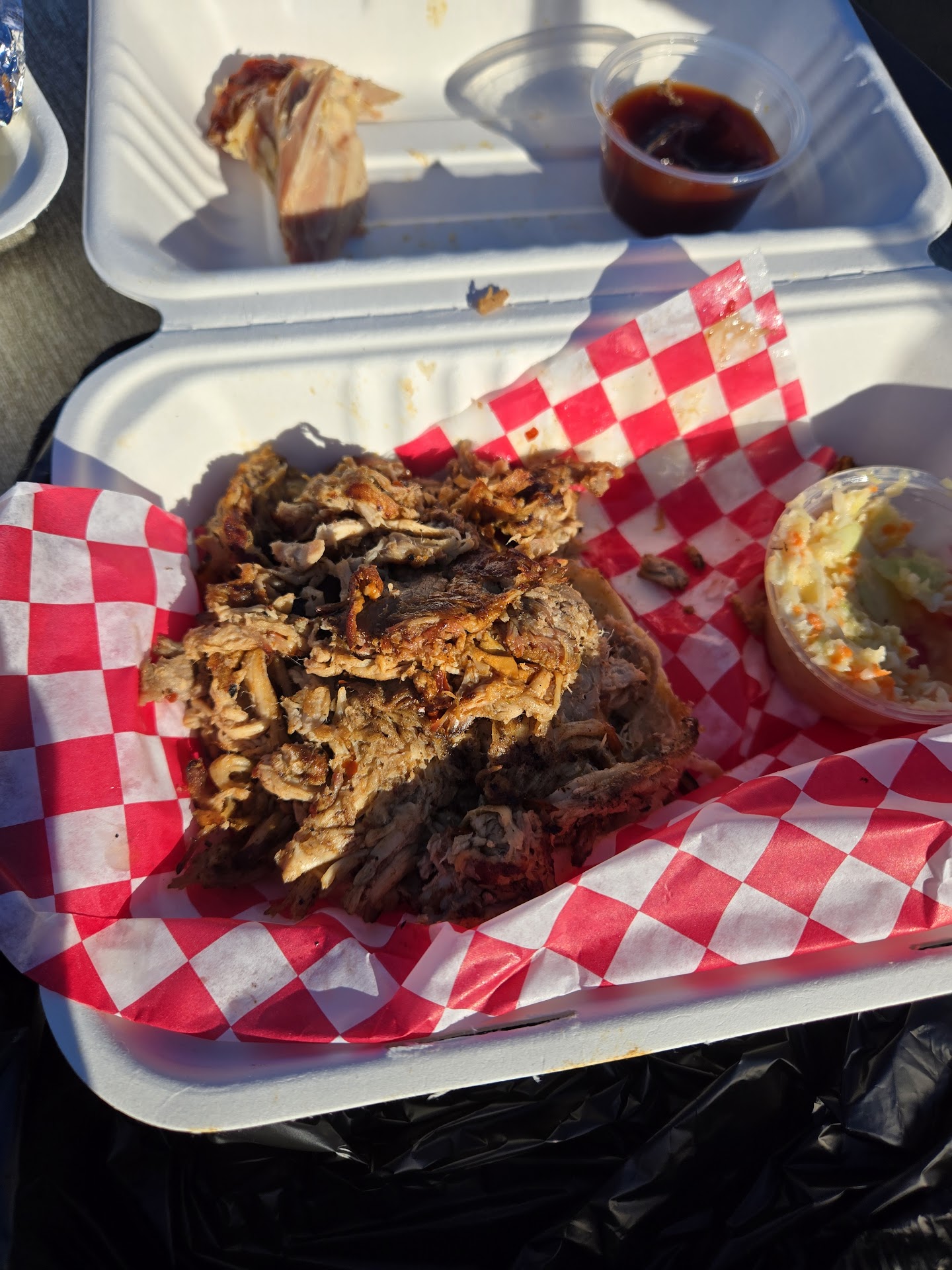 Ordered on their website because they were set up right down from my house. Waited the 30 minutes they said it would take. Got there they informed me that their online orders go to the downtown location. They called down there and our order hadn't been started. Drove the 20 minutes to get downtown and when I got there they still hadn’t even started on my order. I had asked for the coleslaw form the sandwich to be put on the side got it home no coleslaw. The pulled pork was super dry. The bread on our burger was literally softer than dough it was so soggy. The burger was dripping grease. Just not a great experience. The vinegar bbq sauce was...