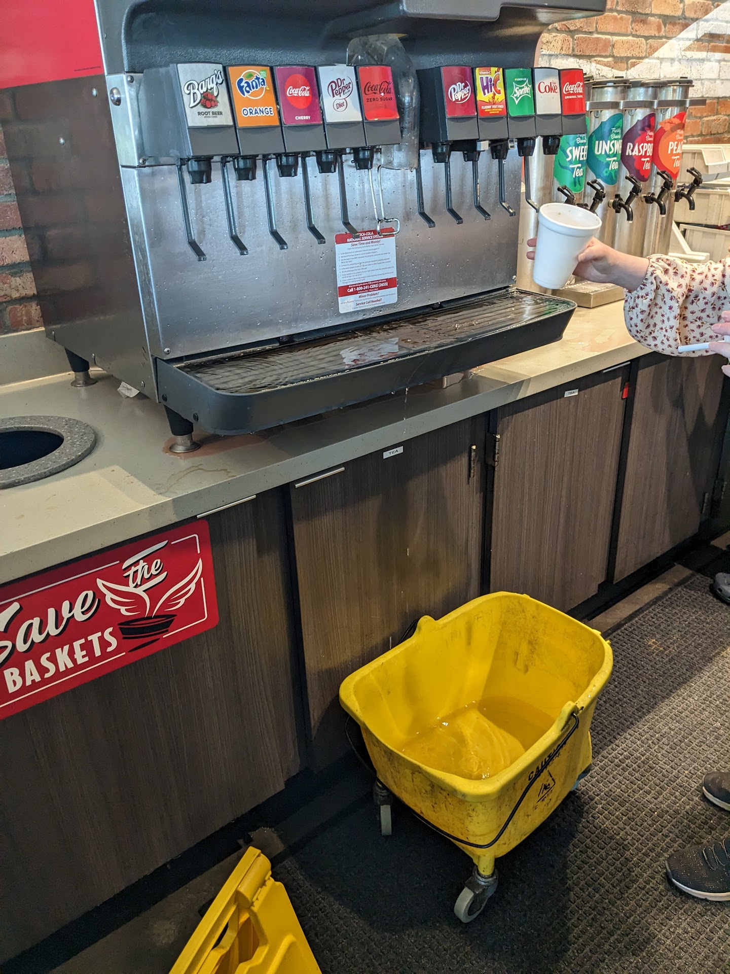 There is a whole list of sides to choose from, some of which are an upcharge like the fried okra, side salad, fried pickles, Etc. They also have quite a few choices of sauces. I grabbed my number, paid the lady whose name was Kat by the way, she mentioned that she was a new employee and I will say she did quite well. Hint, hint to her manager. They have a full fountain bar with four different choices of tea, including sweet, unsweet, Peach and I believe raspberry although I'm not positive. I did also upgrade to the large drink so that I could take it back to my hotel room. Obviously with a fountain bar off to the side there are free refills. I found a table although it was slightly dirty. I did grab a napkin and wiped it off. I just figured with them being so busy no one had a chance to clean the tables although I will say that I never saw anyone come out and clean off any of the tables while I was there. This may be a suggestion to watch for in the future. My food arrived in about 9 or 10 minutes later which I thought was very good considering all of the people in line.