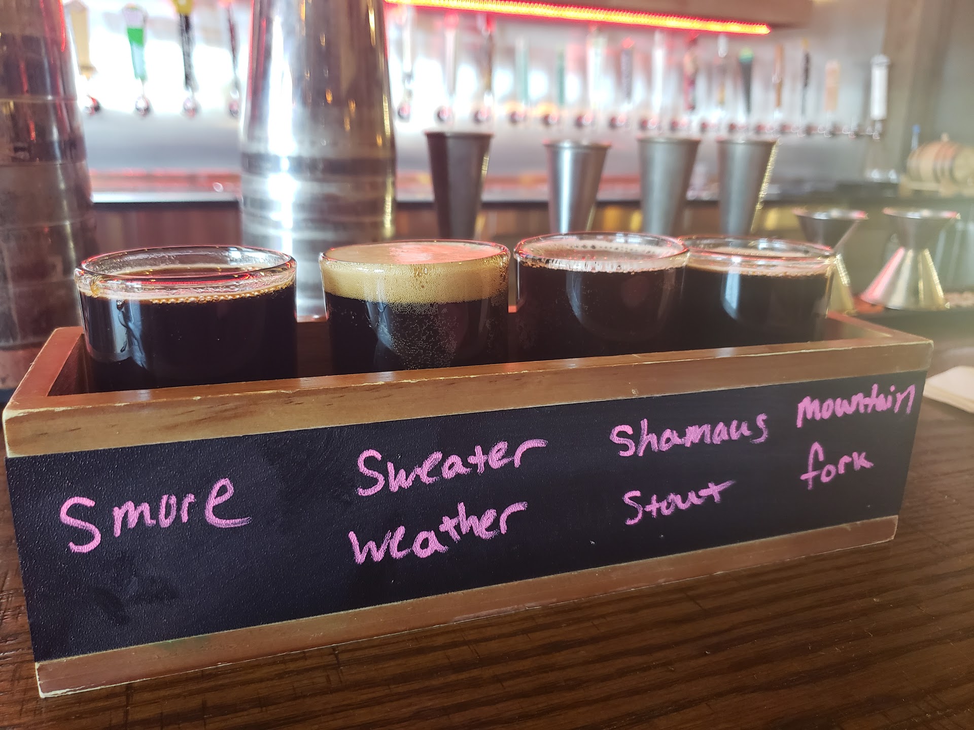 Great food and good atmosphere. Think of this as one of the really nice bars that you would find somewhere like Downtown Dallas or Phoenix. Beer selection is good with a couple of stout beers on the menu for the "real" beer drinkers. Great wine selection with wine dispensers, similar to a setup we experienced in some of the wine bars in Alaska. We went in for lunch on a Saturday, which was serving brunch. Neither my wife or I are big "breakfast people", and the lunch portion of the brunch was a little sparse. I would suggest making the brunch menu a bit more balance - as it seems to be more breakfast focused than lunch focused. Only reason that I docked one star from the review is that we sat at the bar area and as typical with the new generation of food-service workers, the bartender had more interest in chatting with co-workers and checking their phone than interacting. Were in to try some of the beers and got a flight of four to see which ones we liked best, and would have ordered a 16 ounce serving of the ones we liked, but we were never asked about it until after we were halfway through our meal. Another example of how restaurants need to have secret-shoppers on days when the owner isn't around to capture the experience from the customer's perspective. Nothing worse than trying to flag-down your bartender who is engrossed in conversation with one of her co-workers and isn't paying attention to what is going...