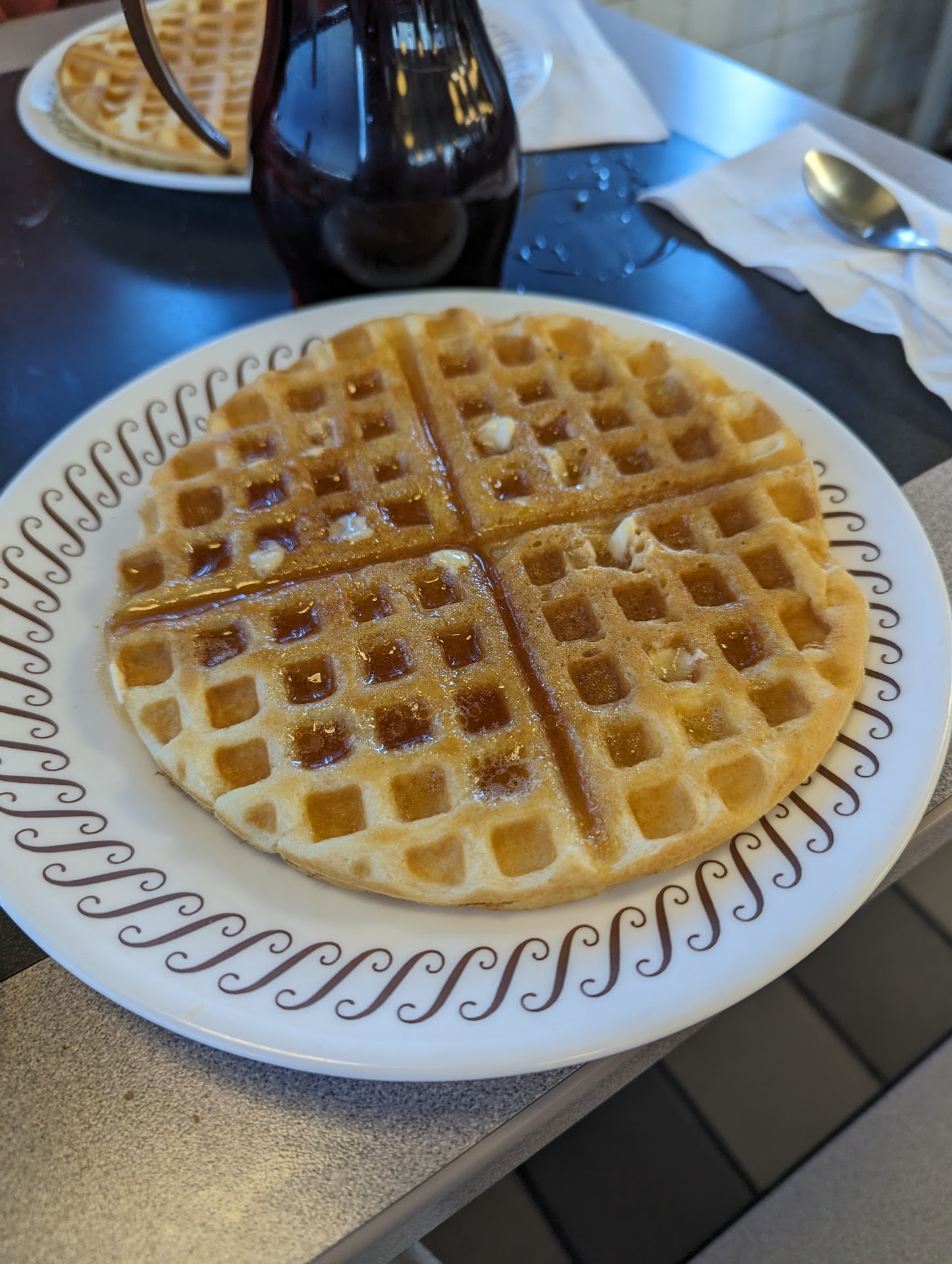 Read moreIt's been a long while since I have been in a waffle house, and the Waffle House on Hwy 71, did not disappoint!! When you go in, you will be kindly informed to sit wherever you like and immediately ur waitress ( ours was top notch) is by your table getting ur drink order and giving you a menu. Back with drinks, we had breakfast so coffee X2 this morning. We both had the special, it came with 2 eggs, cooked any way, 2 pieces of wheat toast buttered, we had the sausage X2, and we replaced grits with hash browns, and yes that's not all, it came with a Belgium waffle on its own plate. Oh my goodness. I couldn't eat all that, but I ate it all but the toast. I really hurt myself y'all. I forgot to take pics until I was 3 bites in! I did get a pic of the waffle though! Stop in and eat here if you get the chance and don't be afraid to joke around with the waitresses, they are a blessing!! The food is so wonderful on the pallette. The place is clean and inexpensive. Just what is needed for the season to relax for a minute and enjoy yourself with the...