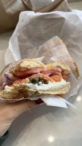 Their smoked salmon sandwich with asiago bagel was great! Cold smoked salmon, red onions, capers, tomatoes and Plain Cream Cheese on a kettle-boiled bagel with Asiago. Creamy, cheesy, and the salmon was good. Filling.