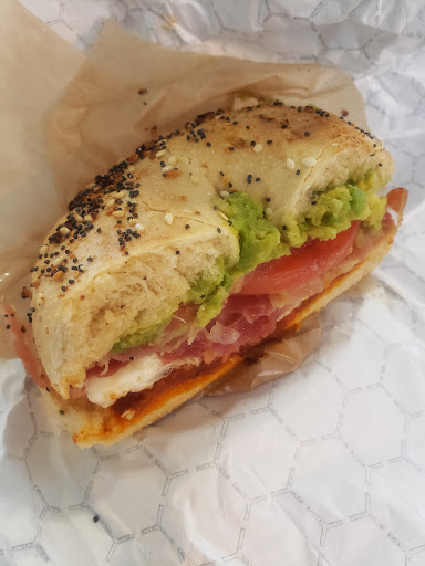 The bagel was fresh and the right texture. It had the right amount of flavoring on it, so as not to overpower the sandwich as some everything bagels do. The avocado was fresh. I was not too keen on the softness if the bacon. It appeared barely cooked. I like my bacon crispy. Despite this, the bacon had great flavor and was not chewy, so I didn't mind so much. There is a red sauce on it that was a little confusing to my taste buds. While it wasn't bad tasting, it doesn't seems to pair well with this bagel. It tastes more like a marinara for breadsticks or some type of dinner pasta.
