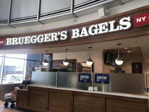 I love NY style bagels and Brueggers is a good name I am familiar with. I bought $20 worth of bagels at the MSP airport in St Paul which included my toasted blueberry bagel with veggie cream cheese and lettuce and tomato. I hoped to have onion as well but they don't have onions. And the tomato (they gave me 1 tiny thin wilted tomato which barely fit 1/3 of my bagel) wasn't great and not enough and the lettuce was one piece that wasn't fresh and not enough. The veggie cream cheese barely had veggies and they didn't put much. The cream cheese was spread in only the middle of the bagel and the outsides were empty along w the fact that there was so little cream cheese to begin with. I was disappointed. And I was still hungry when normally i get full from a bagel w cream cheese and lettuce onion w tomato. The bagels were not as chewy and fluffy on the inside as I hoped but it was flavorful if there was something on top. There were 2 cheese bagels and they were good bc of the cheese on top. But the bread was again too thick and heavy with little flavor but pure flour. I did appreciate that they wrapped each bagel I bought for friends in separate wax paper to keep it fresh as I had a few more hours on my...