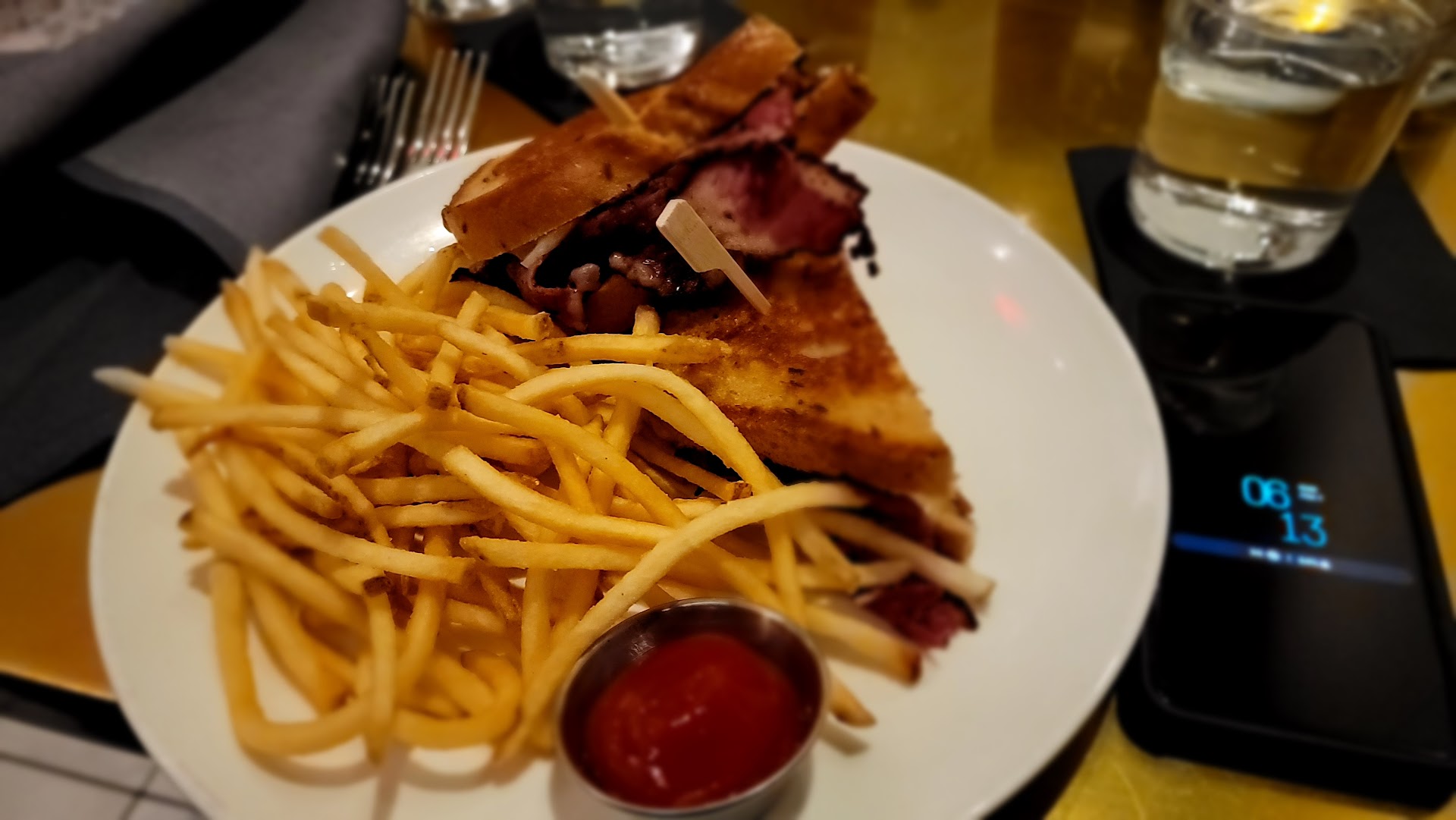I had the Steak Frites and the reduction was fantastic with it, the truffle fries were delicious. The steak was tender and moist and so easy to cut into even with a regular dinner knife.