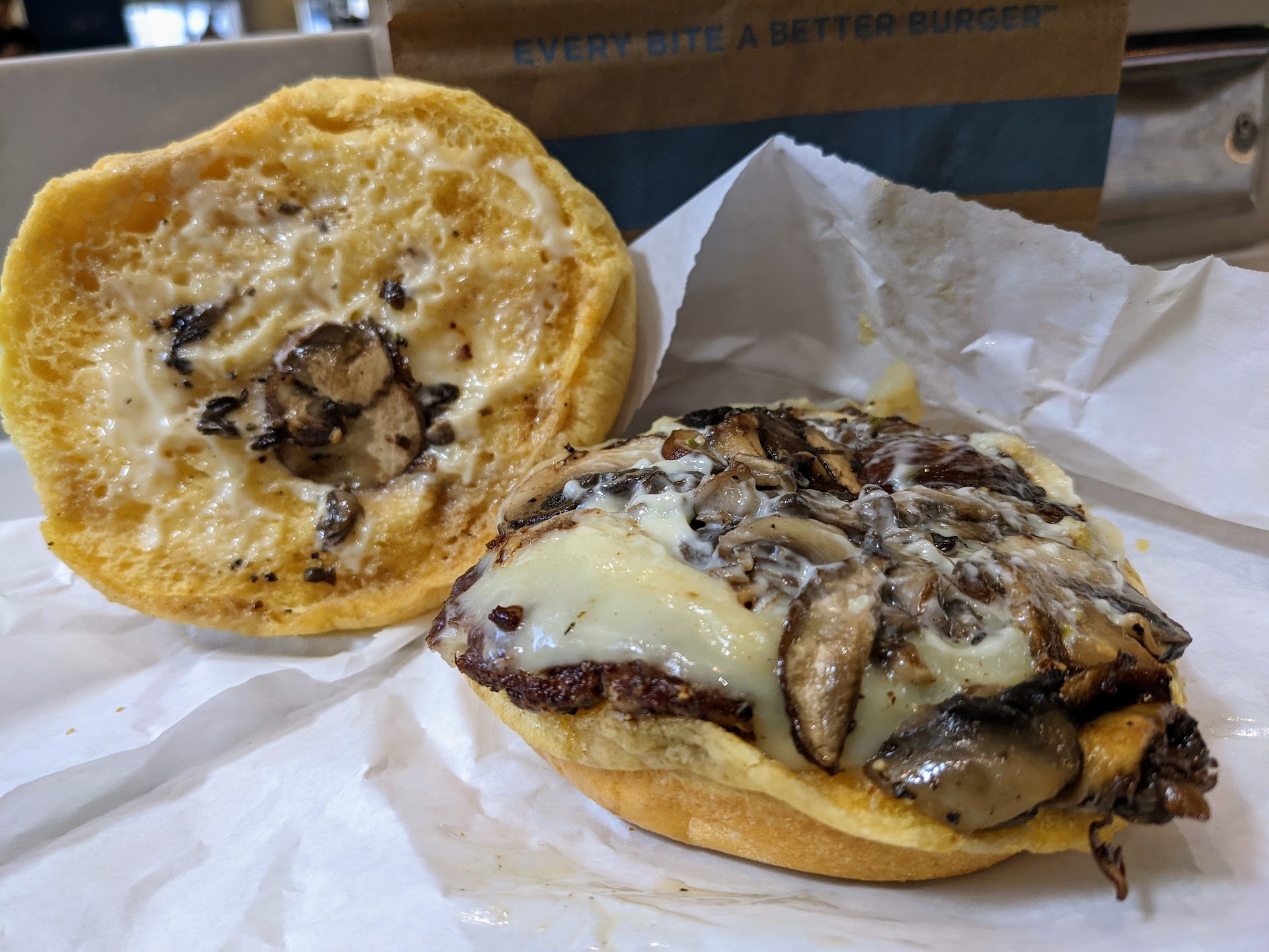 Tasty and fairly quick during light traffic at the counter. About 5-6 minutes (once ordered) with five orders ahead of mine. Two of the three ordering kiosks were out of service. So I needlessly waited almost as long to place an order as to receive it. The working kiosk was out of paper, so no receipt - problematic for some business travelers. $9.33 for a single-patty mushroom burger, sandwich only, no add-ons. Overly salty for my taste, but flavorful all the same. Not much to look at and not very big, but rather satisfying compared to most other fast food burgers these days. Nice beef patty with a crumbly, homemade sort of texture. No form-poured sponge-meat here, thankfully. In the end, I'd try it again, but there are other options to consider at MSP.