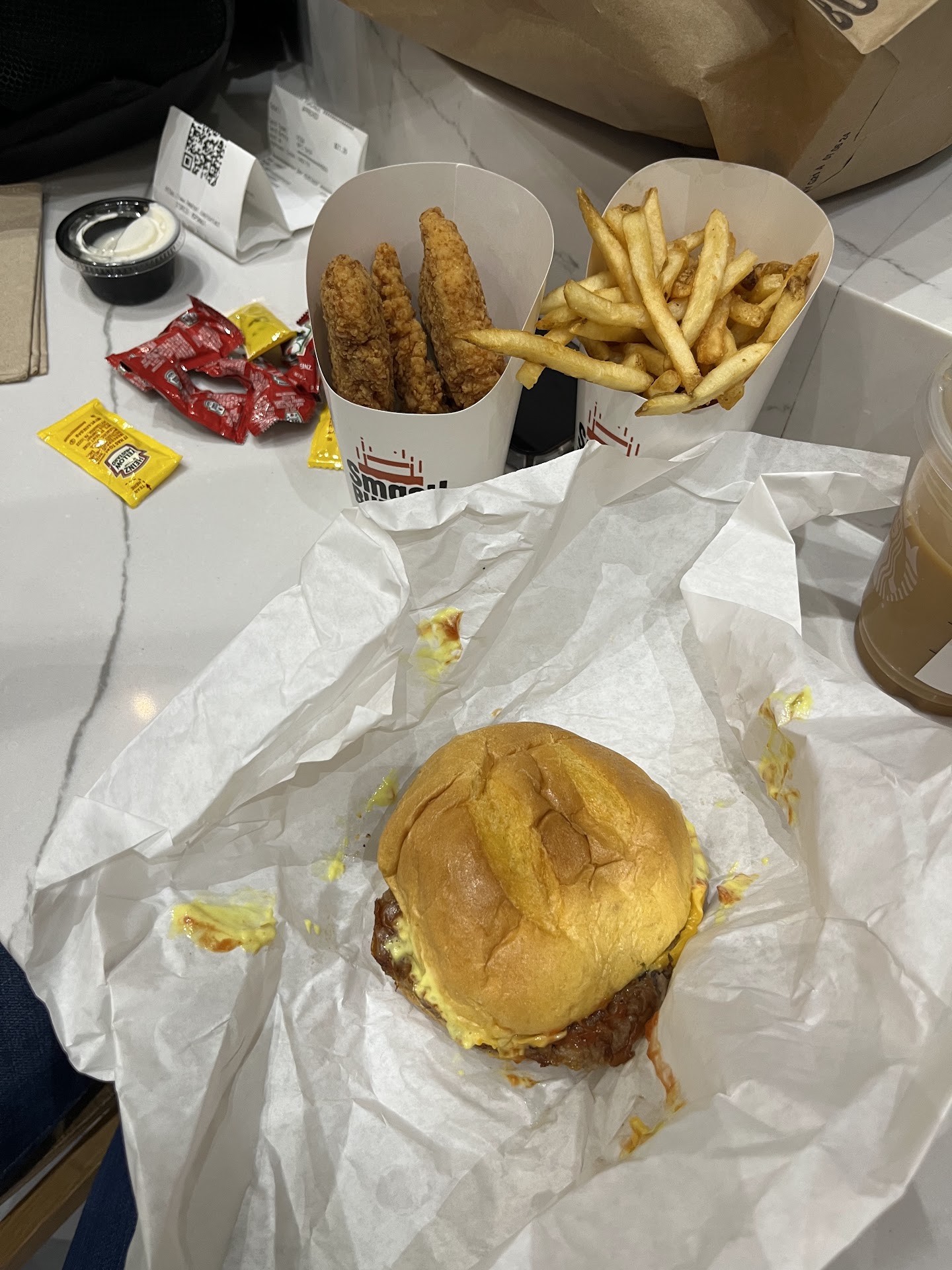 Read moreIf you're up burger junkie like me, then you probably need to stop here. This is a great burger place. Right about on par with five guys, maybe a little better even. Ordering from a kiosk is fast and straightforward, and that's great. However the prep time could be better. Now, I know that any smashburger employee would say that it takes time to hand pat and cook a burger. Fine. But we live in the modern age here, and airports are a high traffic location. I think they could do better. Also none of the employees were in much of a hurry. I know, I know.... I can hear it now.... What am I? Some type of slave driver? No, I'm just a customer. And if your employees don't work quickly enough, then you probably need to hire some new ones with more energy.