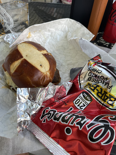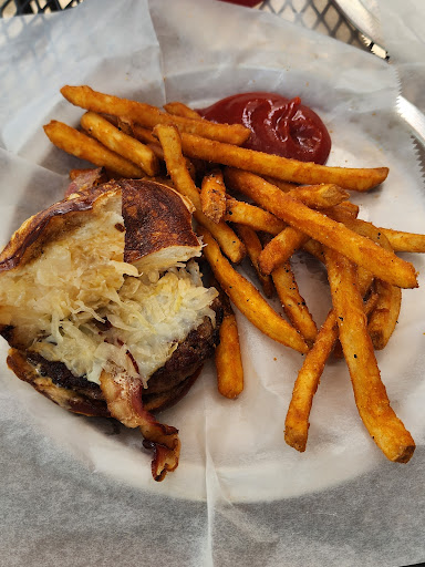 First timer. Beautiful day so we chose to sit outside and enjoy the 72 degree sunny weather. When we got there, we had our F150 truck and parking was limited. Some street parking in front of the restaurant, maybe 6 or 7 spaces. About 5 spaces in the middle of the street and a few on other side of street. We did park in the angled parking on the left just past the restaurant as our truck is large and we had a bike rack that had our bikes on that we wanted to be able to see. Parking is limited. No specified handicap parking. They had about 7 or 8 tables outside so we found one. Took a few mins for a waitress to bring us menus but we did notice she was also waiting tables inside so we just relaxed. Ordered the Hammstein which is a burger, reuben style with some fries. Didn't take too long for the food to come out. Fries were nice and crispy. Hammstein was very good. Had just the right amount of dressing and sauerkraut topped off by bacon which was very good. All in all Tickle Pickle was a cool experience at a very reasonable price, which is hard to find these days. As long as you know parking may be limited and to just be patient and drive around the block you'll love this hole in the wall. It was worth the stop...