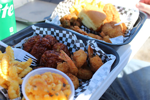 I think I just found my new favorite food truck. I bought a large plate with pork chops and catfish and for the sides I got fried okra and loaded fries. A true big back meal. The okra was great. It was very well seasoned and didn't have that slimy texture that you can get on it occasionally. The loaded fries were great. Ranch, cheese, and bacon on top of seasoned crinkle cut fries? You cant get go wrong with that combo. The fried pork chops were amazing. Seasoned perfectly and cooked just right. The only issue I had with it was the breading fell off very easily. Now let's talk about the catfish. I ordered it with the spicy lemon pepper sauce and this is a MUST. It is a dollar upcharge but totally worth it especially if they put just a tiny bit more sauce on it. The catfish was cooked perfectly and lightly seasoned. It could have used a little more seasoning to make the fish really pop but it was great as is. These folks are onto something. I'm amazed it wasn't more busy...