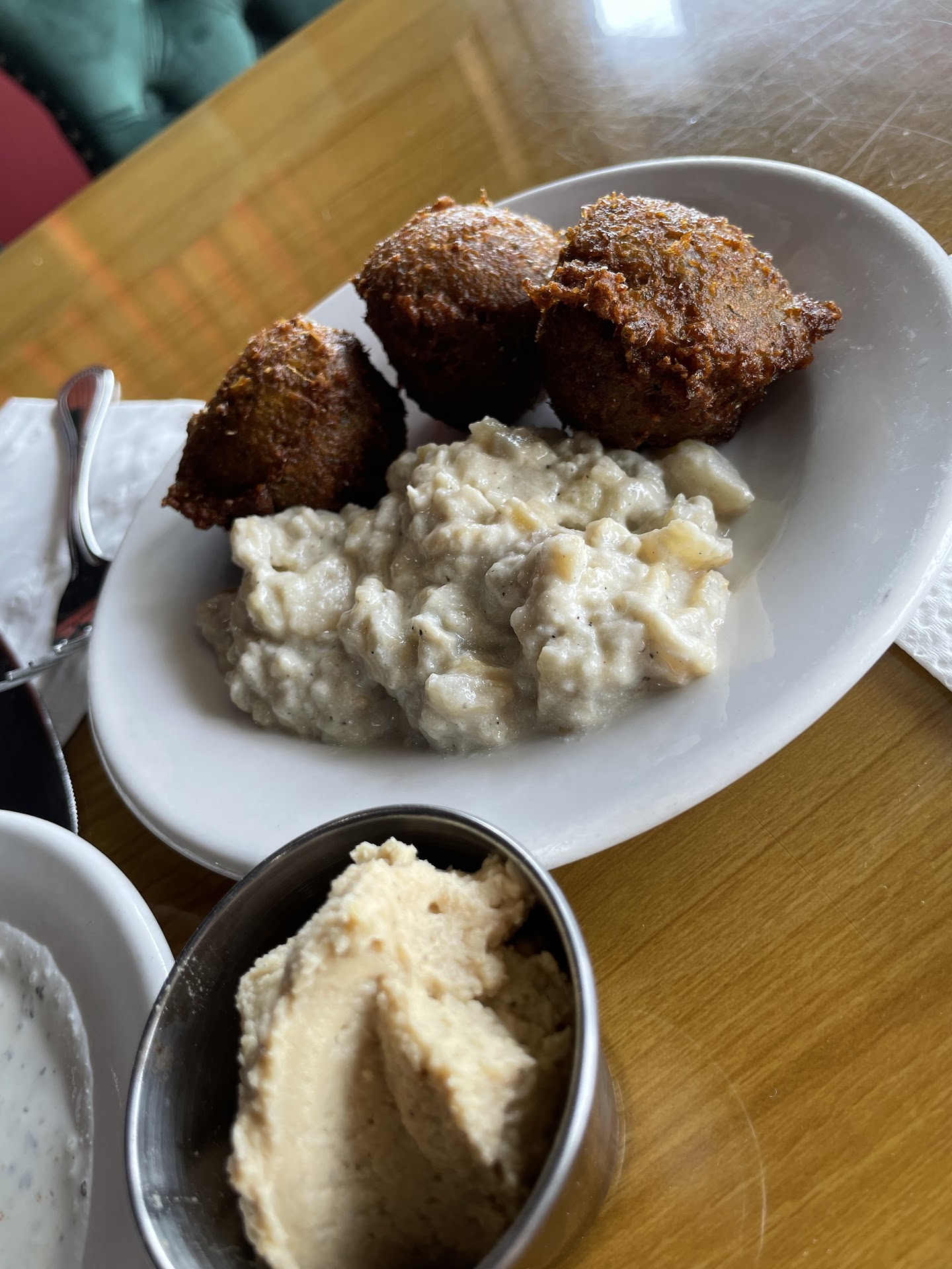 Extraordinarily delicious, extremely well seasoned, and by far one of the best moussaka variants I’ve ever eaten. Loved the pita, was warm and well balanced with crunchy and soft parts. Falafel was pleasantly surprisingly tangy and very fresh made. Hummus is very thick but true to the chickpeas. Baklava was astoundingly good and was the lightest baklava I’ve ever had; most baklava tend to be very thick and too heavy with the syrup sauce, but this was very balanced and rounded. Portions for the musakka was huge and are very reasonable for the price.